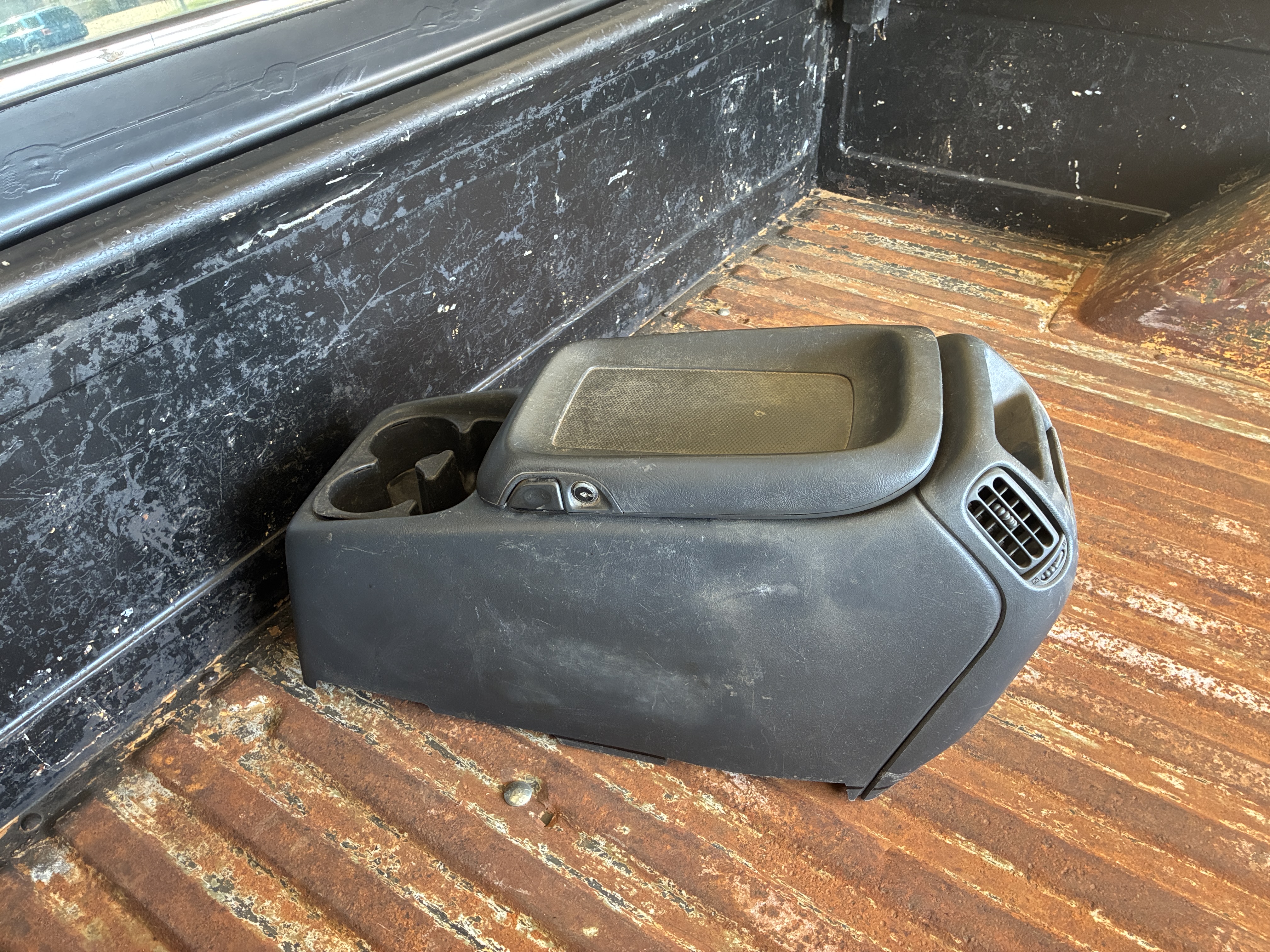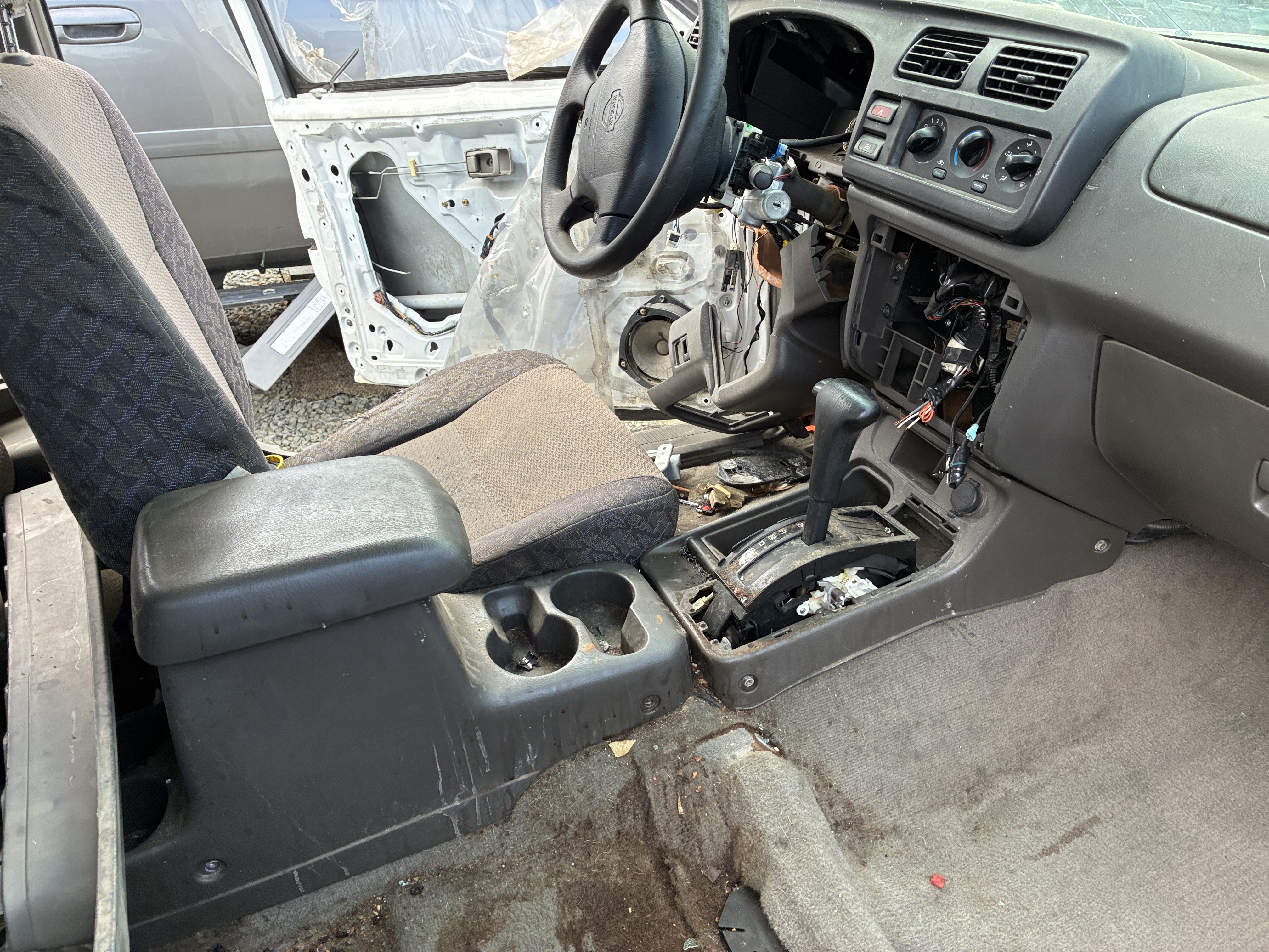 cause then I came across this 2000 Nissan Xterra 2WD aka "Snow White" with a two piece stand alone non integrated center console (still in tact)