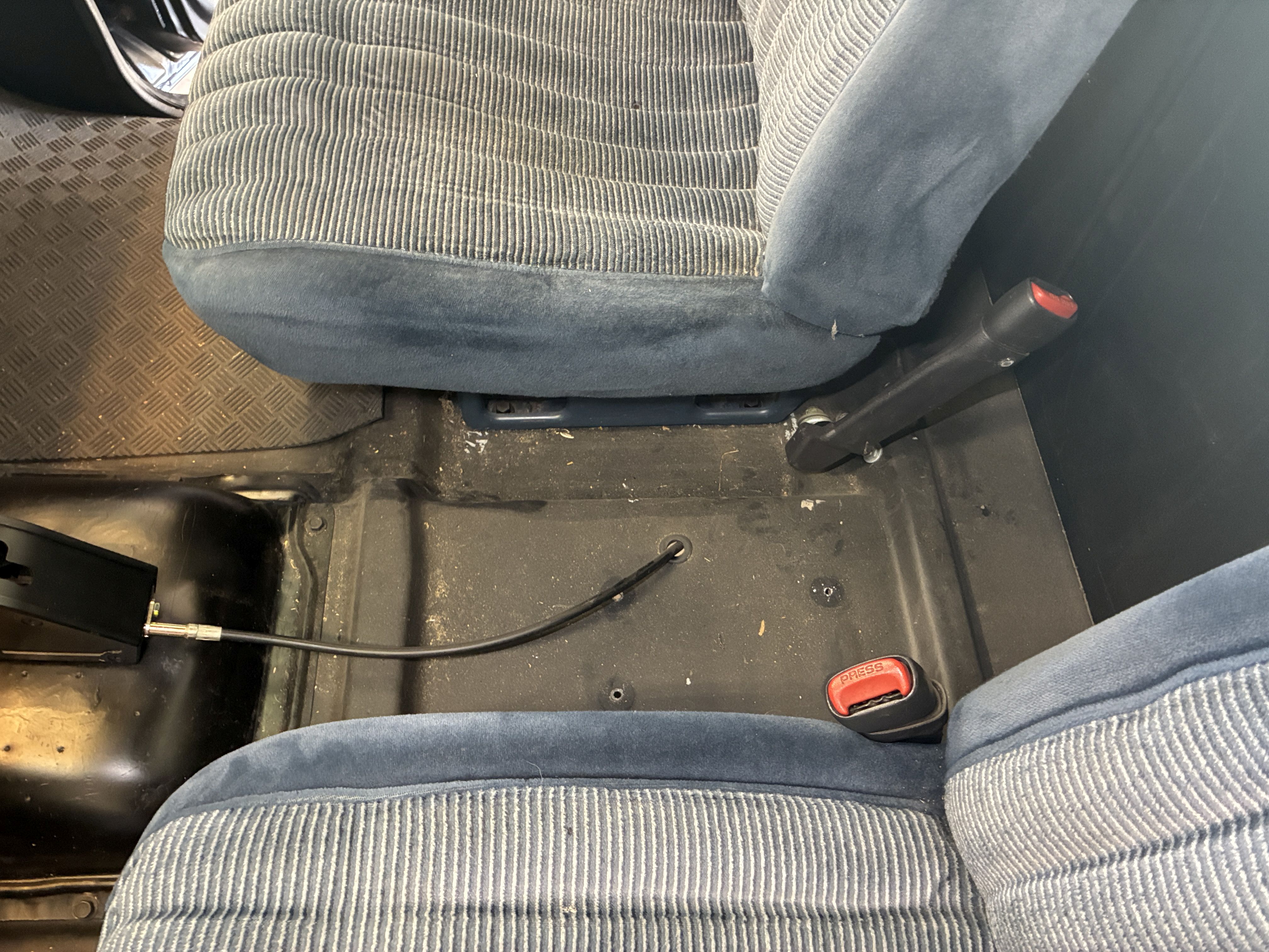 I was hoping to have it sit right about here, in order to retain the center console, hence the jig to test shortening that shifting rod, and not having to do it whilst laying on my back under the rig