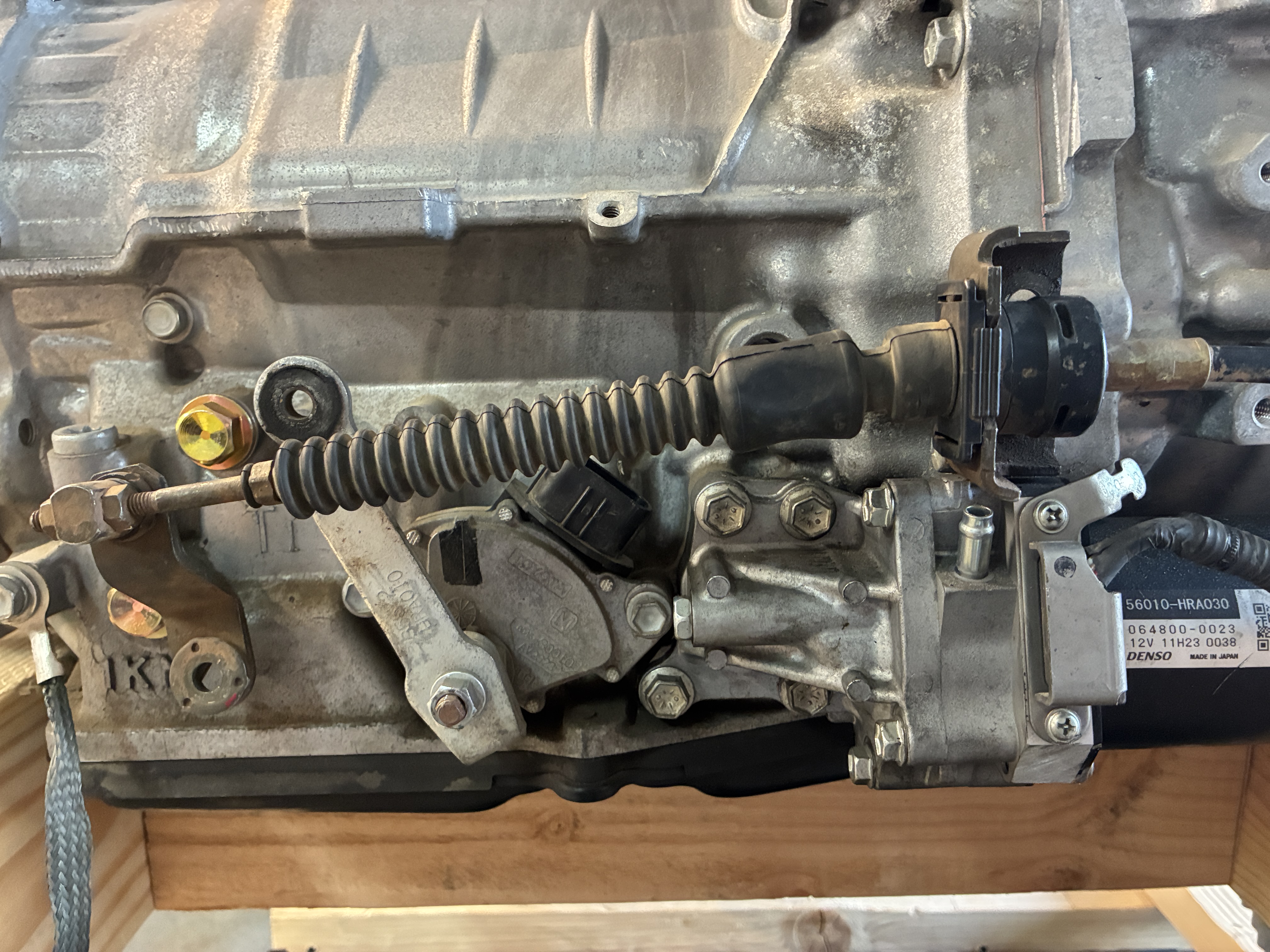 I liked the middle one the Chevy Tracker cause in my minds eye it would allow me to keep the center console that I already have so I started to mount its cable to the Lexus GS450h transmission when I realized this thing operated Bass Ackwards ! When the shifter was in Park the gearbox would end up in Drive (lever towards the front of the car) and when the shifter was in Drive, the lever on the transmission would be pushed all the way back to the Park position. so as much as I liked this little guy the cable was just not long enuff to route it from the front then loop it around to shift the gearbox from the rear!