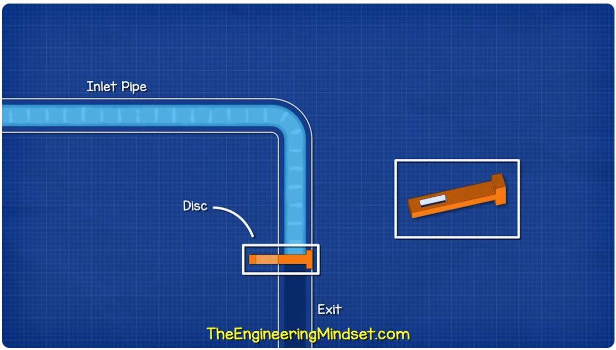 here the big inlet pipe represent high voltage/high current, it has a spring loaded disc aka valve (the orange piece) closing and opening the flow