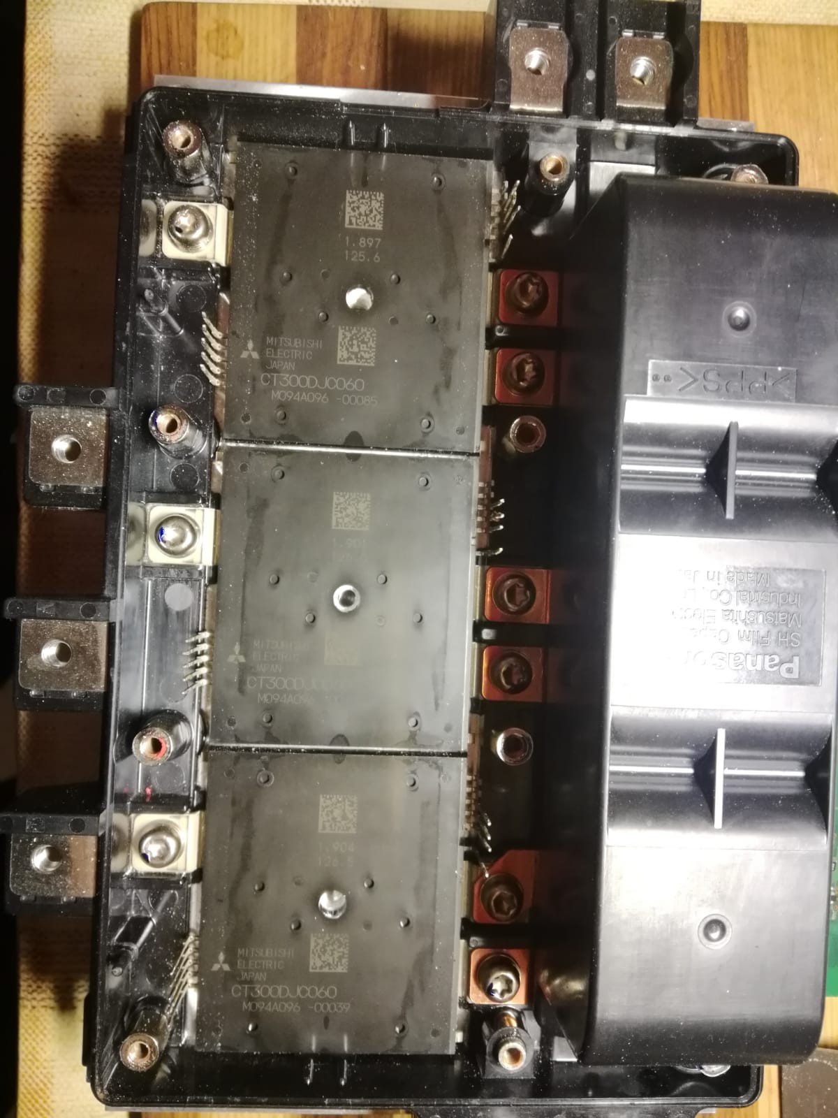 We continue disassembling the inverter, the top cover is held on by 4 bolts , Also disassembling current sensors