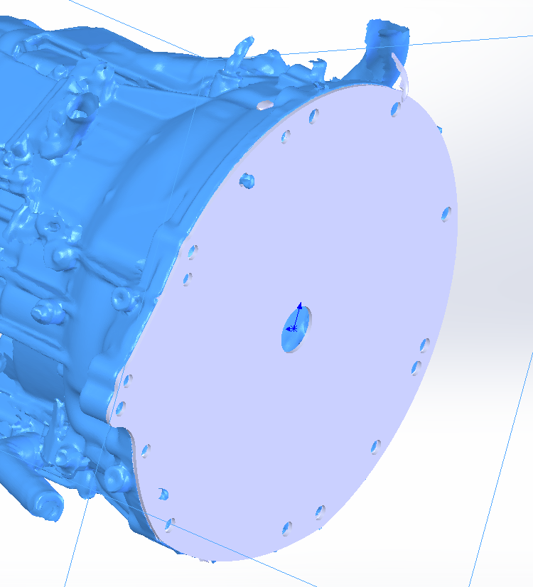 I also have the aligned transmission scan too. It's the one from earlier in this thread reoriented to align with the bellhousing on the front plane and the input shaft aligned as well as I could get it on an axis. These scans had missing input shaft / bore / cylinder point data making it a close guess.