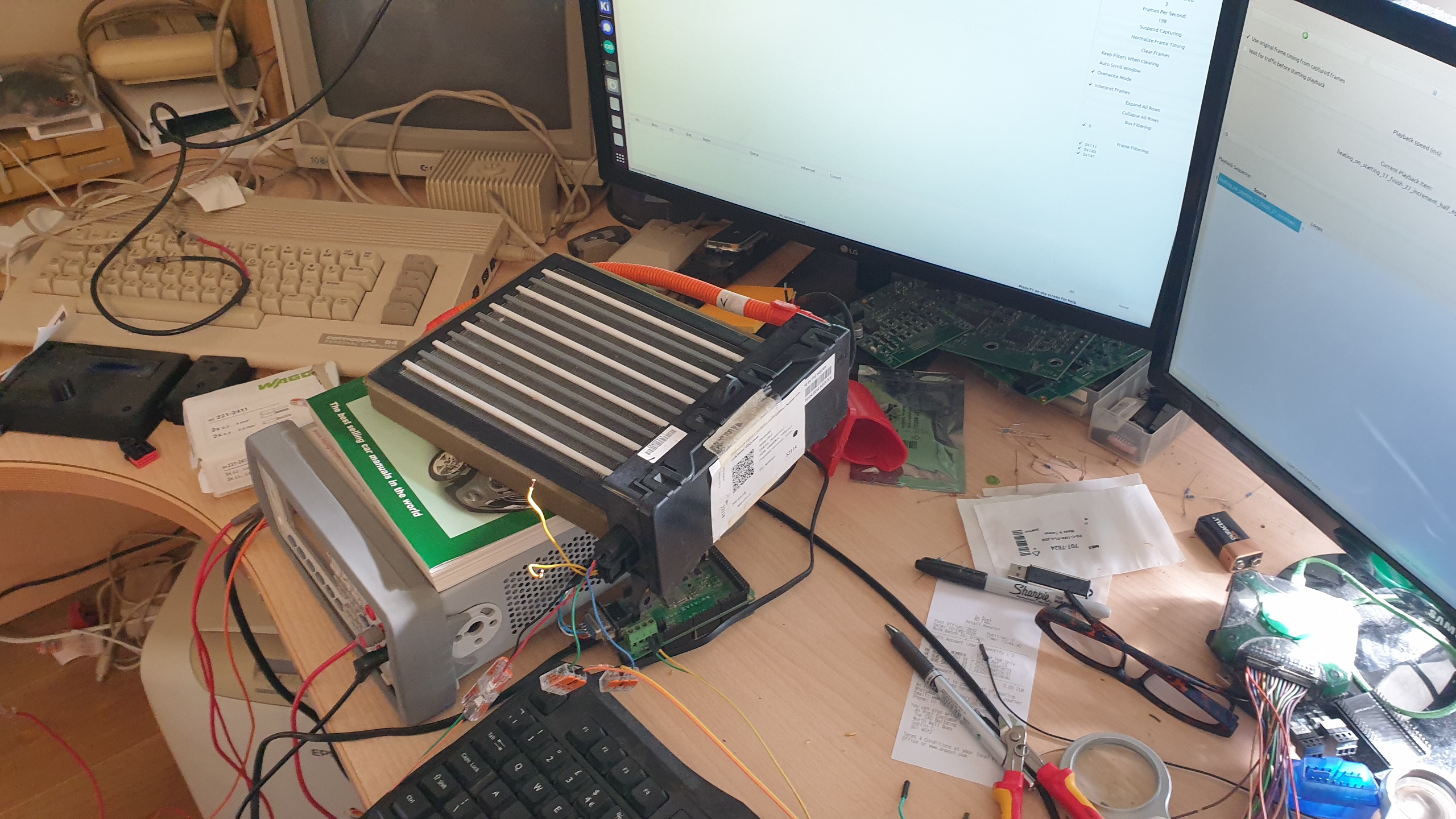 I powered up my test heater with 12v, and received the 0x140 and 0x141 message IDS from it, confirming that it's communicating, and confirming that the logs contain 140 and 141 IDs.