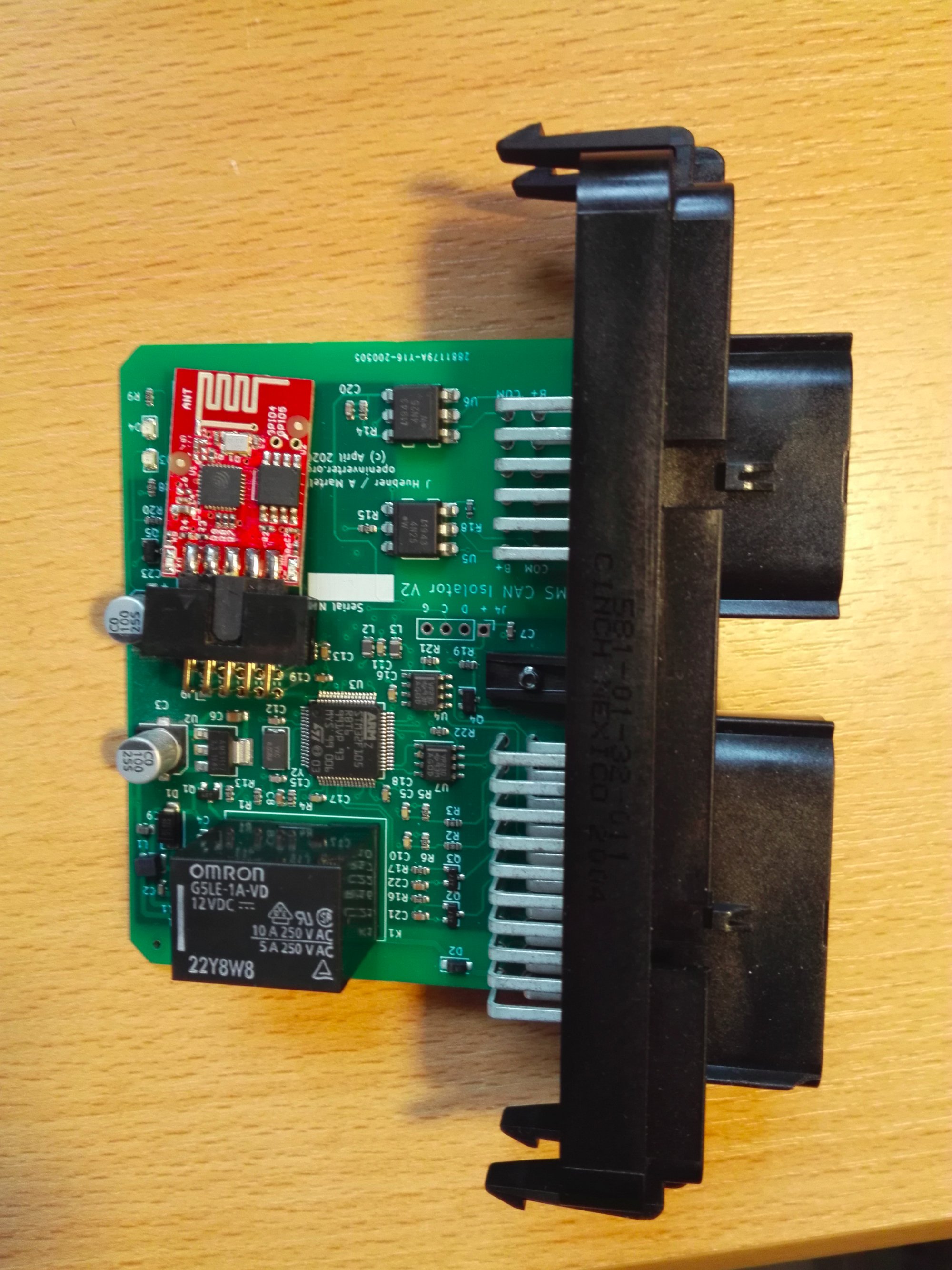 Here on the logic side I will revive the old CAN Isolator that was meant for the BMS. It has 2 CAN buses, a relay and two OC outputs.