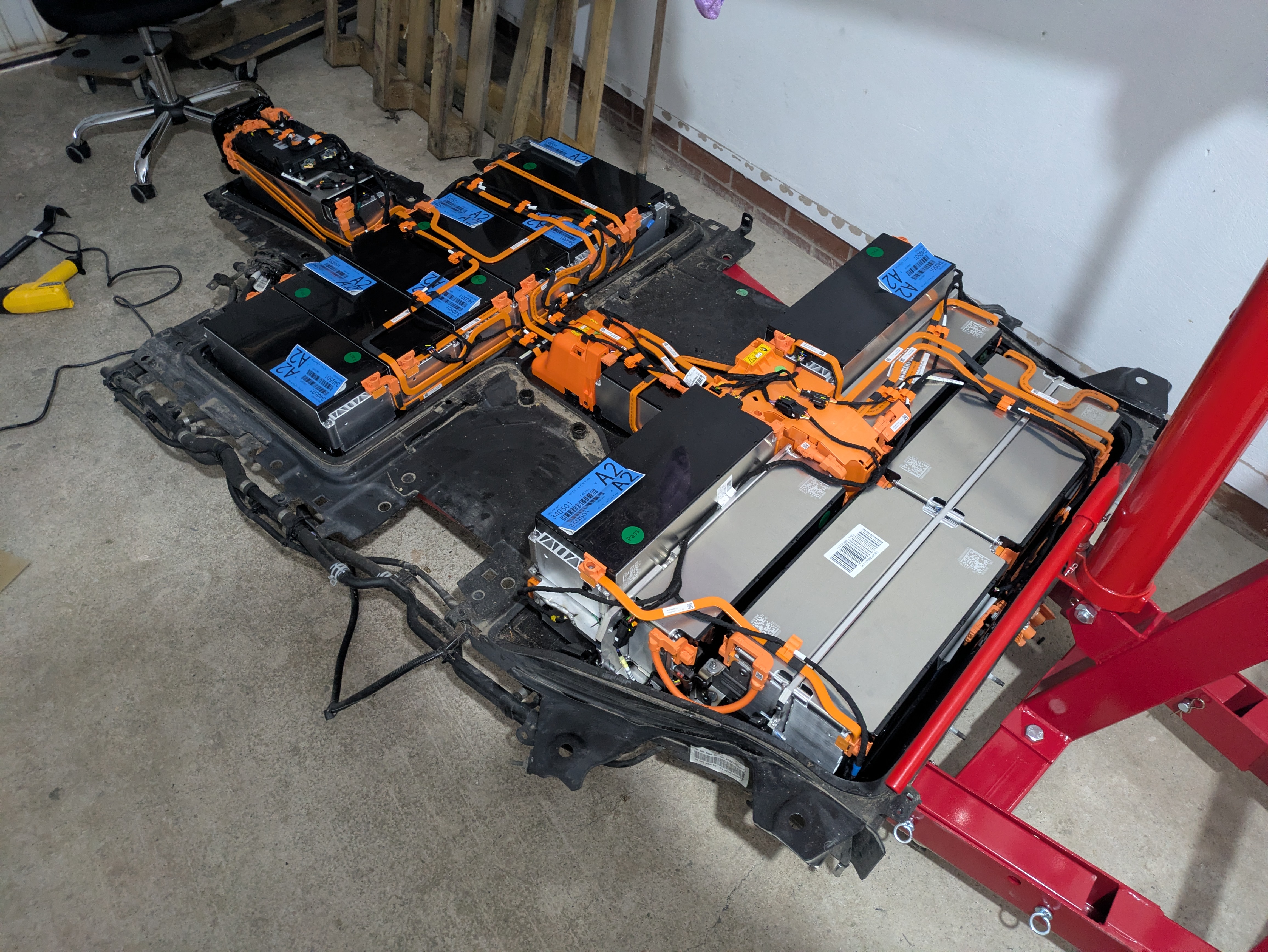 All that lovely empty space in my garage is disappearing rather quickly though so I want to get the battery pack taken apart pronto, I made a start but the way it's glued together is proving to be quite a pain.