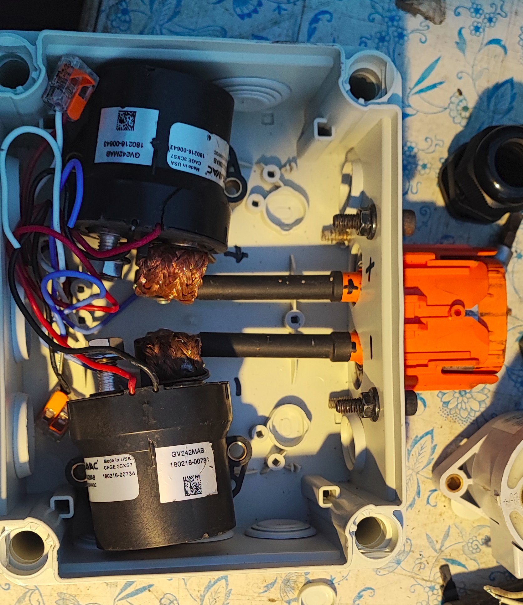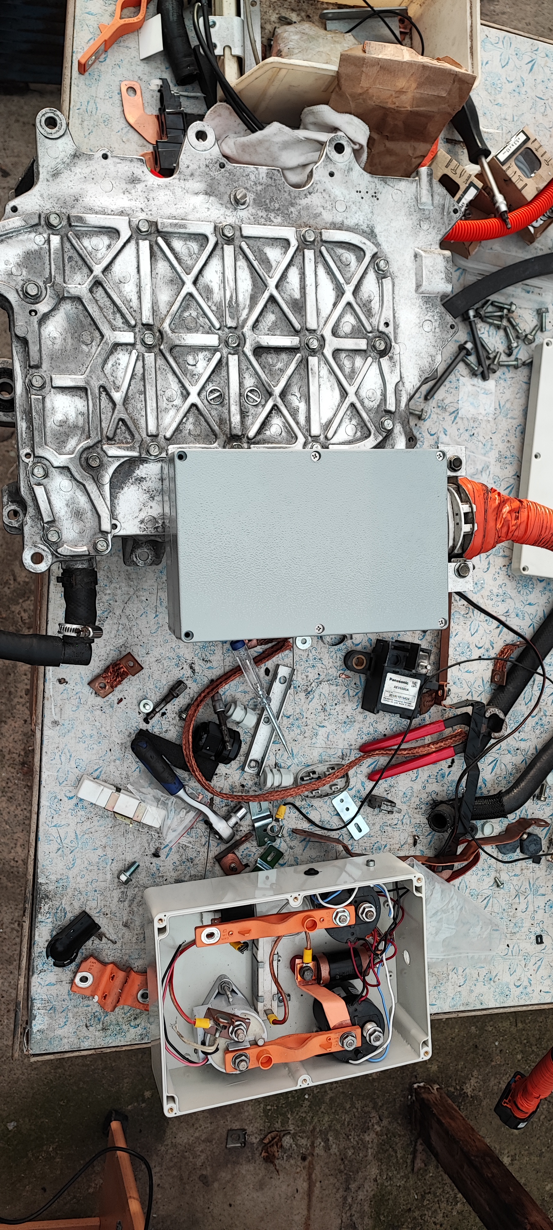 First up would be the contactor block which was sort of unprotected in the exhaust tunnel. Will now put it into various boxes, still to be decided what goes where.