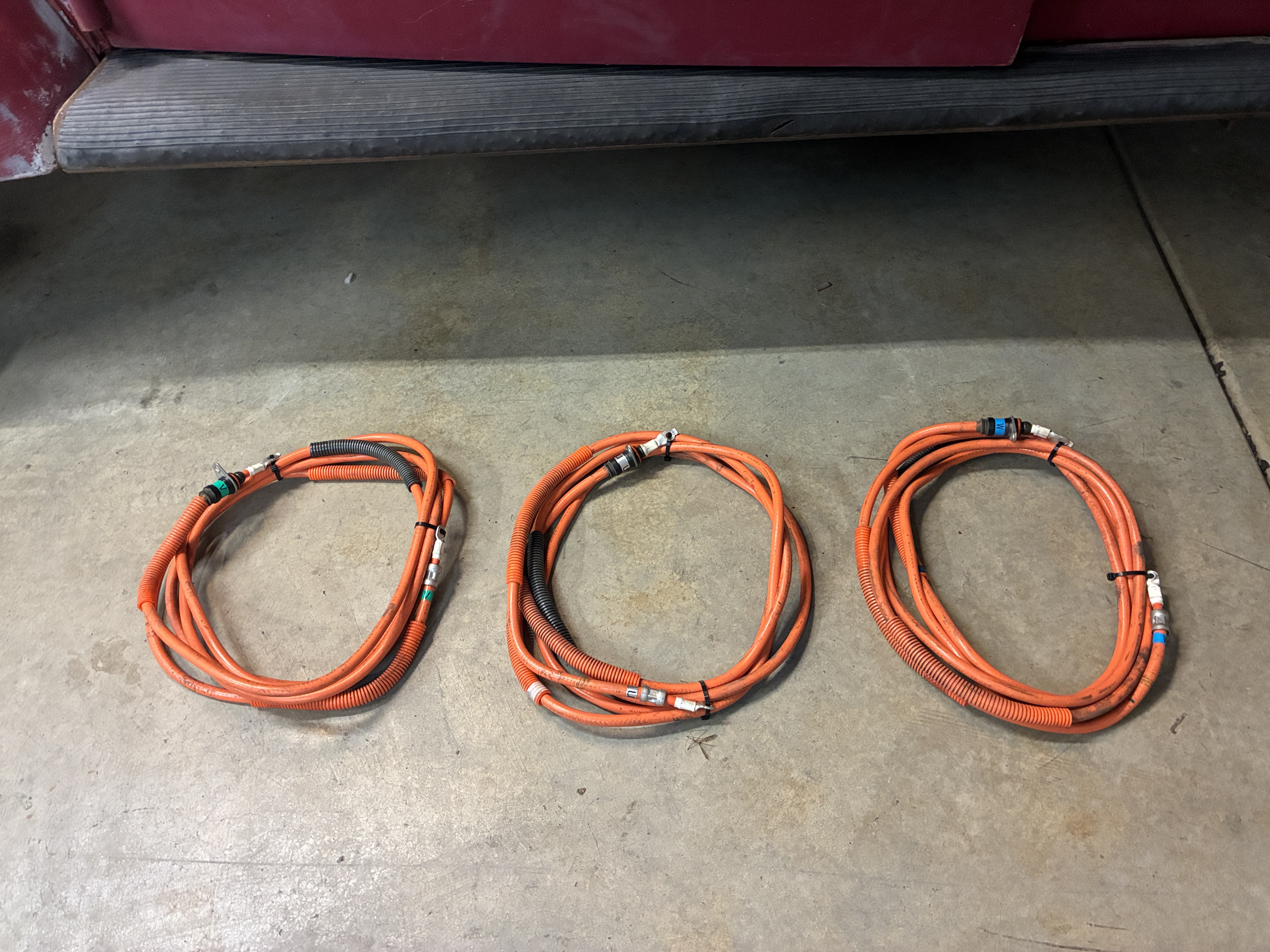 so here I have the three 15 foot wires/cables unloomed and I am thinking the third one can be used to run the DC-DC converter positive lead length wise of the vehicle form the charger to the regular 12 volt car battery if it resides on the opposite side, so a win-win