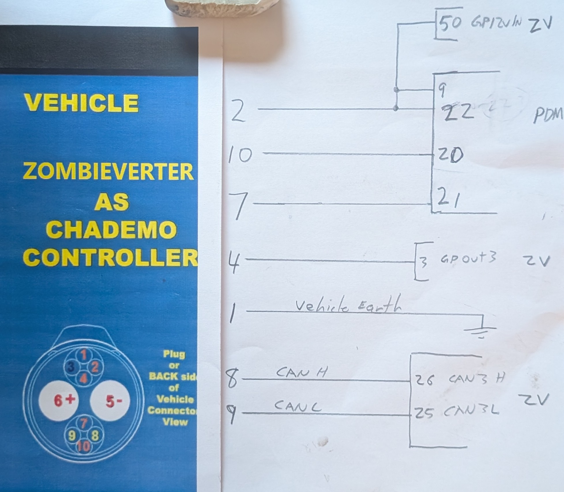 I'm not sure about some of my wiring, specifically Pin 2 Chademo -> pin 20 PDM?. Maybe it should be going to pin 22 PDM?