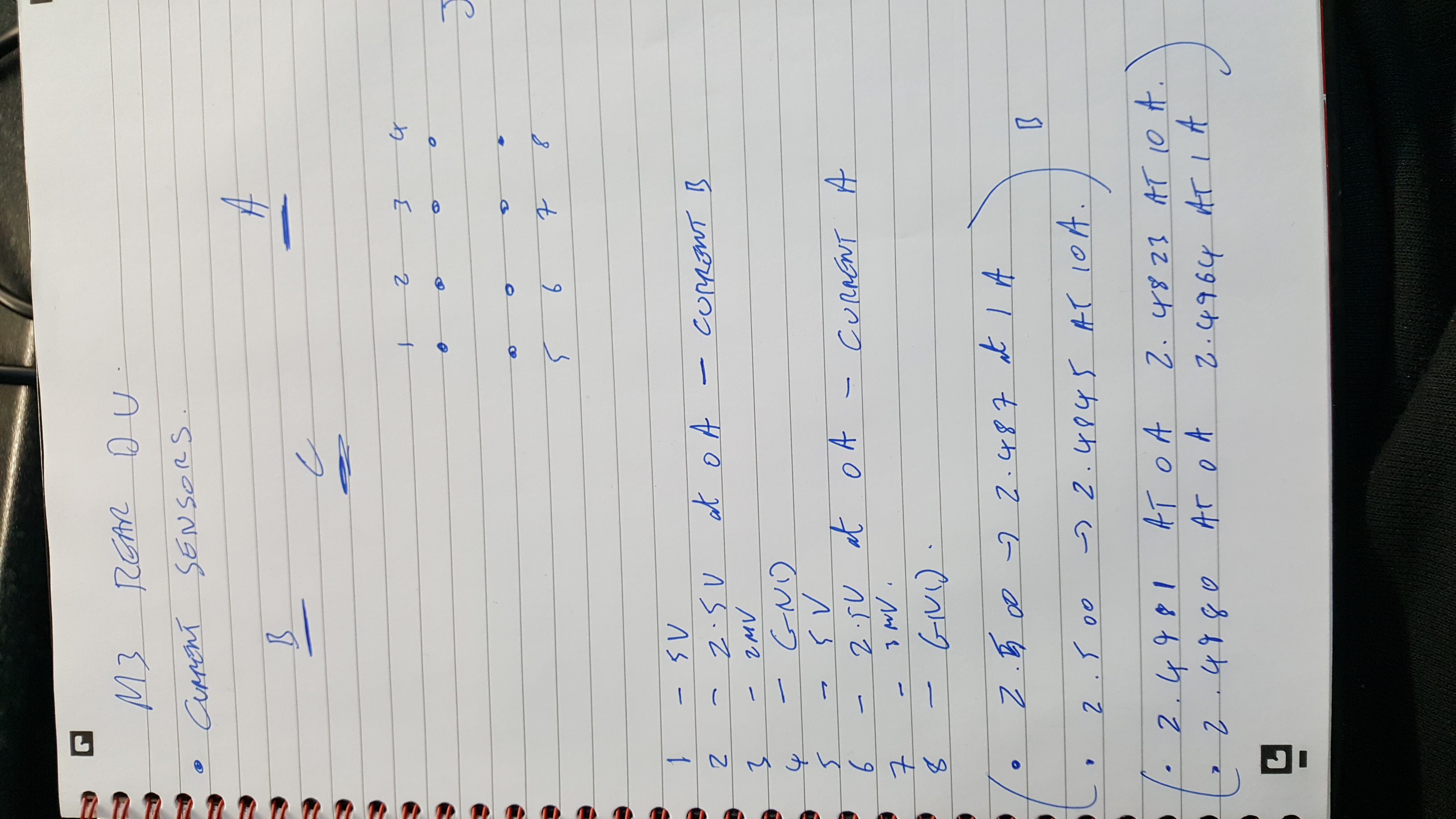 Sensor A : 2.4980V at 0A going to 2.4964V at 1A and 2.4823V at 10A