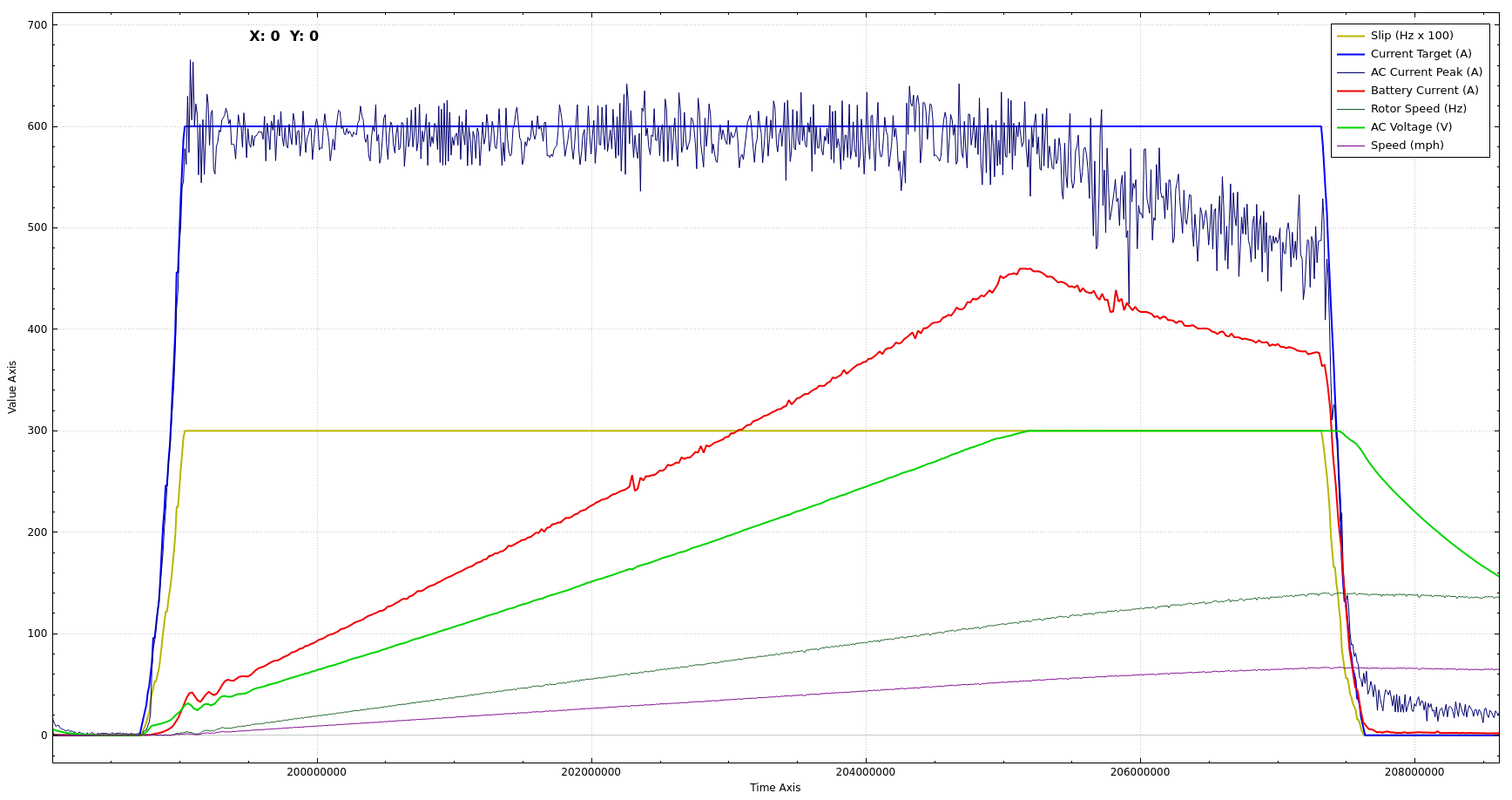 Attached is a SavvyCAN JSON log and graph definition in case anyone is interested in looking at the results from a real drive. This shows short drives including 0-60 acceleration with slip values of 2.5 and 3.0 (charts attached).