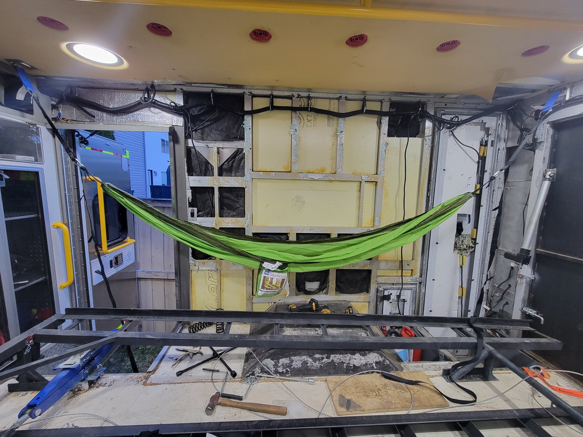 So my wife talked me out of the platform idea because she wants a hammock for the yard. I couldn't figure out a good way to span the back bay so I was about to buy some hinges and make a folding table that would work as a bed, but I guess the hammock is less work. I didn't realize you're supposed to lay in them diagonally though. Not sure that's going to work since it's necessarily so close to the wall. Feels comfortable enough to lay straight in it though...