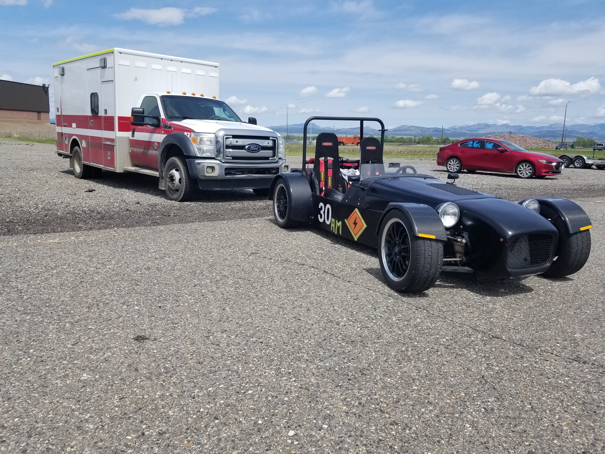 This venue was pretty cool. It's also used as a police training track so they have a big skid pad and a small road course. My runs were 80-some seconds long, and we got 12 runs through the car. Each run used about 0.8kWh of energy. It would have been good to charge at lunch because the drop in power was noticeable, but I did manage to get through the day. There's probably 3 hours or so between morning and afternoon runs. I could probably get by with a 2000w inverter and 5kWh of storage in the ambulance, or a 2000w pure sine generator so I could charge anywhere on site.
