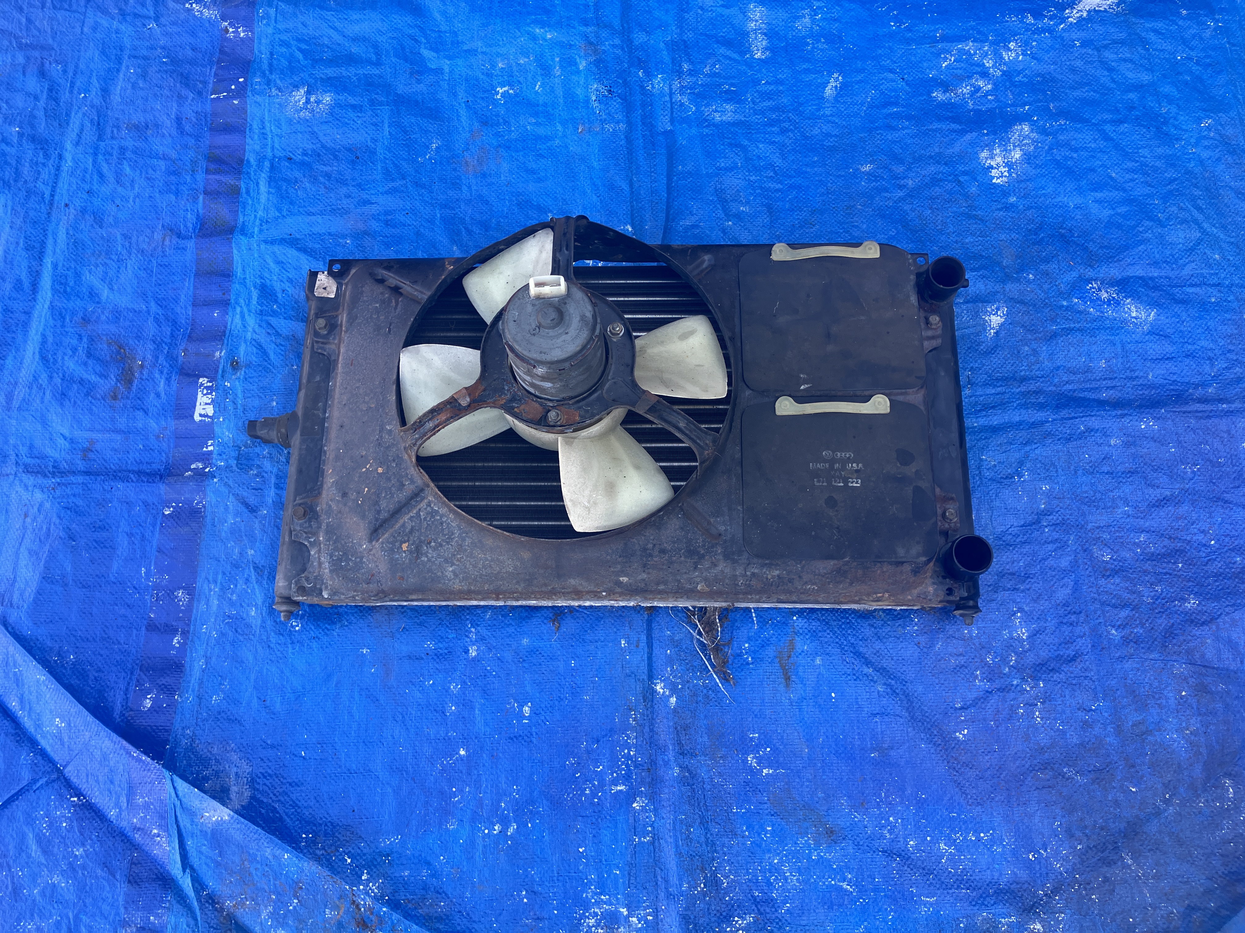 the stock radiator had to come out to make it easier to drop the engine later