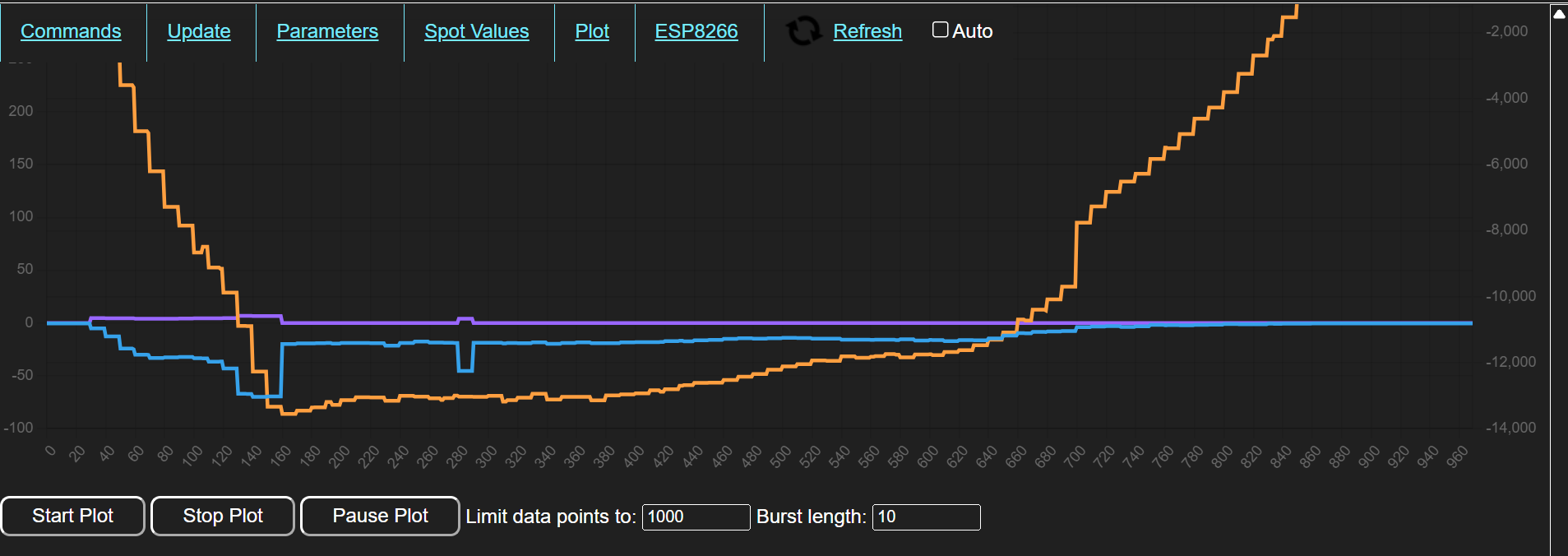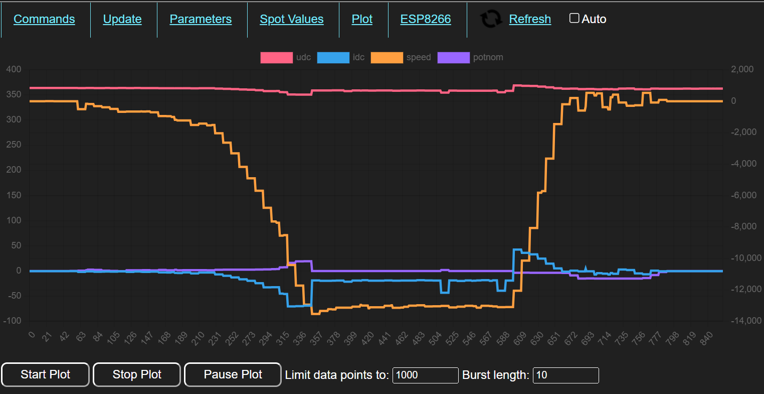 So there must be a current or power limit you are hitting a certain speed. Question is if its related to requested direction not too sure how to easily plot the driving in reverse and getting the 8K speed.