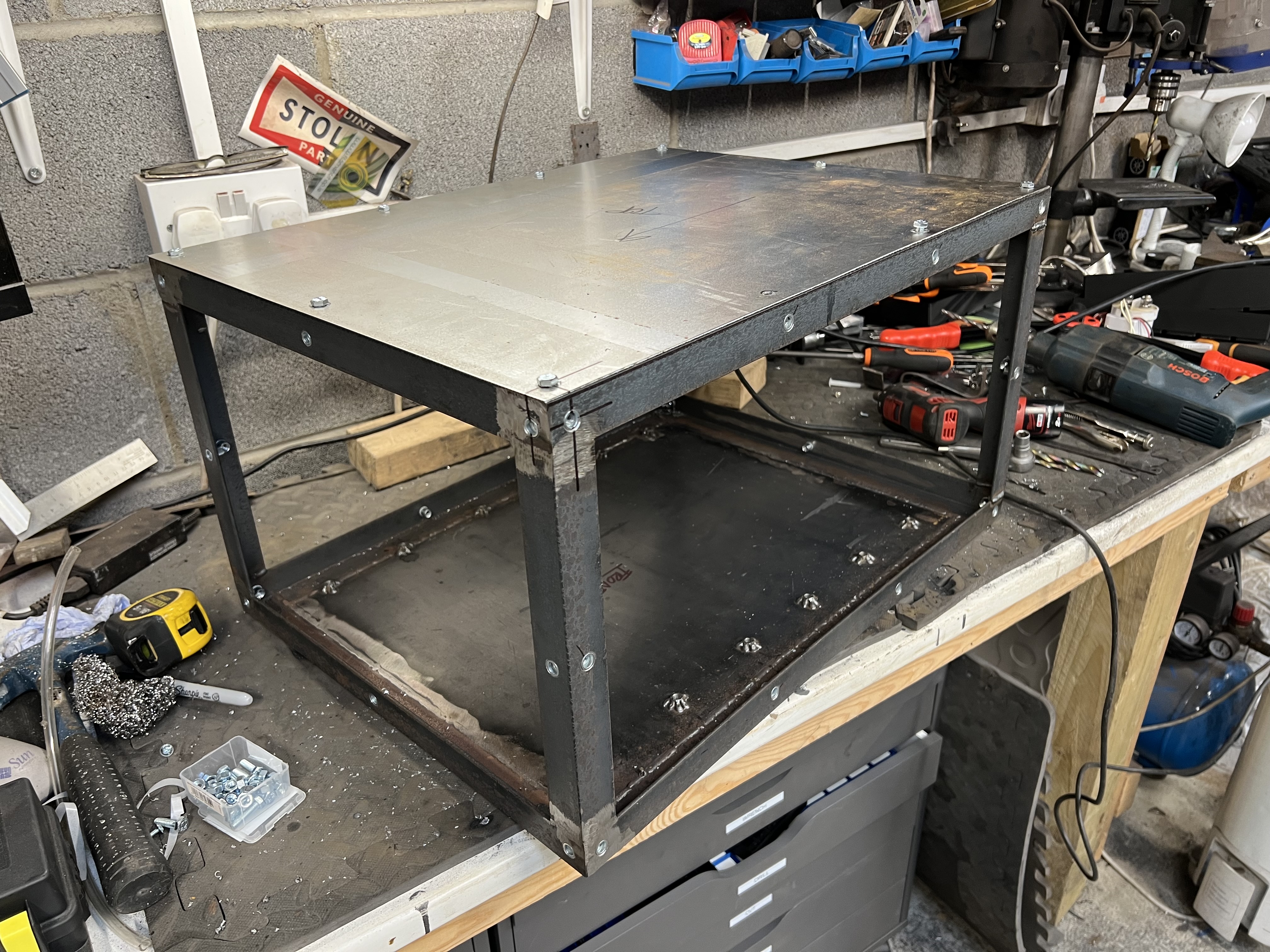 Building your battery box this way is a lot of work, I built a couple this way but the last one I just cut the sheet steel like an opened up cardboard box and folded the corners with the help of some angle grinding along the fold lines.