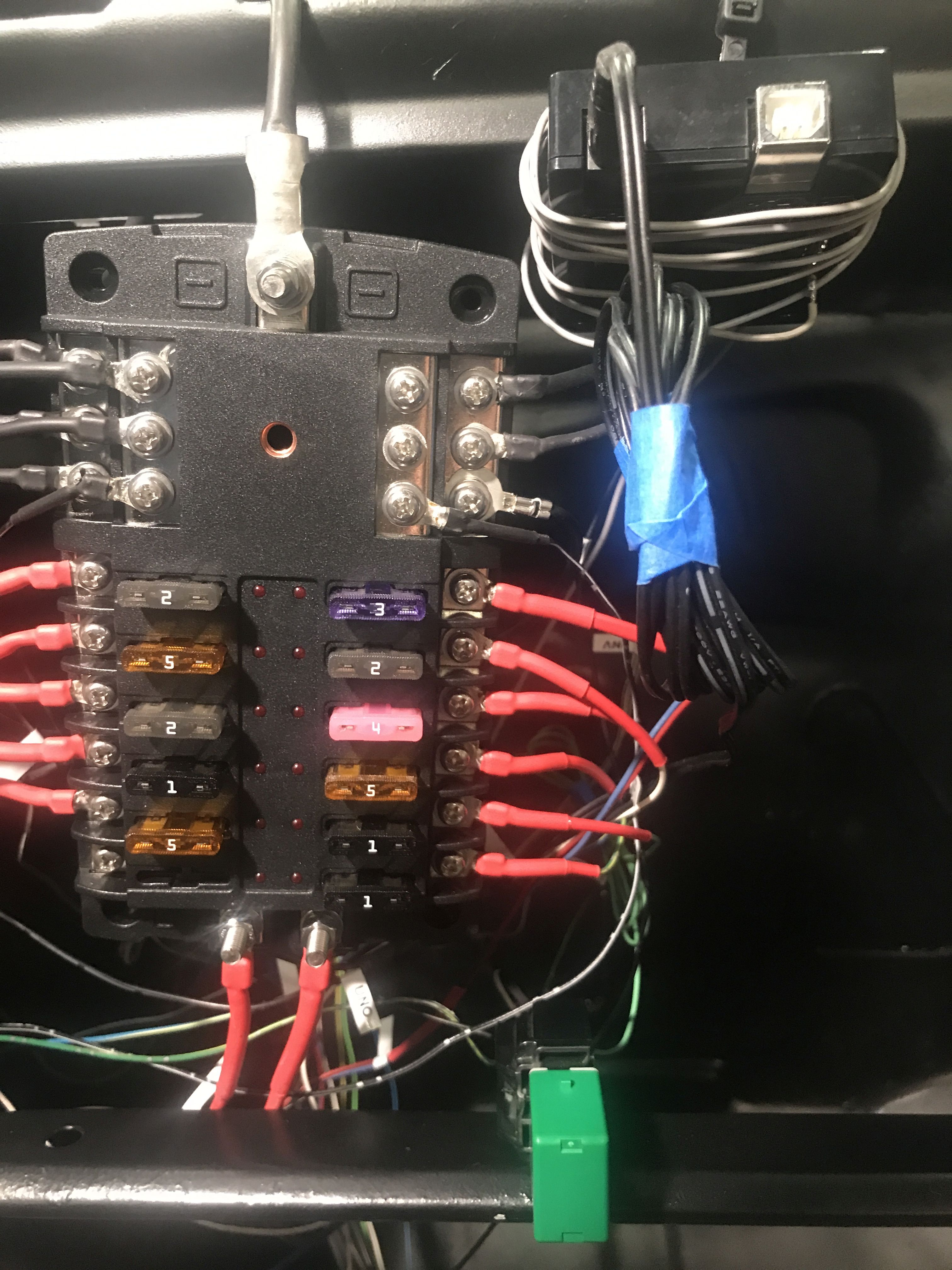 the green thing is a 5 pin relay that simply turns off the Charger when I turn the key to the ON position (this is needed since the Charger is wired to the Accessory side which is part of the Key On power, without the green thingie the charger would always be on)