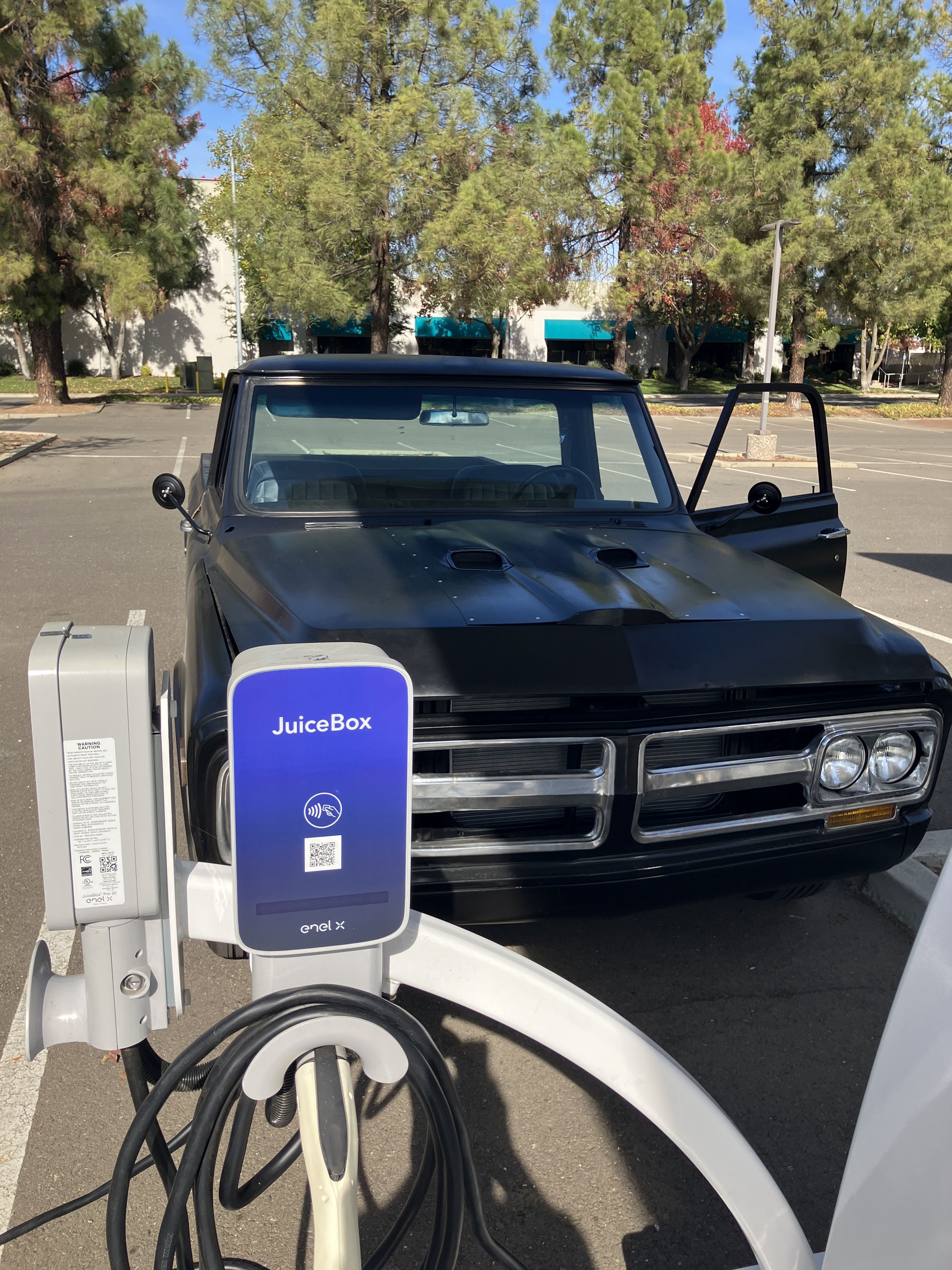 today I got to charge at the wife's work (2 miles from our house) at a system called JuiceBox, you can't make this stuff up folks