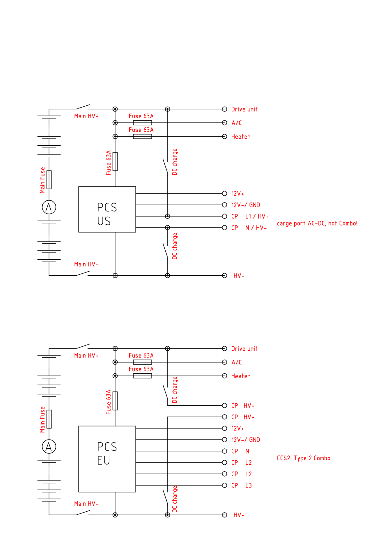 I have the penthouse here, and I can tell you that only 2 HV lines go into at the US model. These are always cnnectet to the AC side of the PCS and additionally switched for DC charging via 2 extra relays. The normal main relays have to be switched on for driving and AC or DC charging. Pre charging in managed by the PCS by convertig 12V to 350V, no Pre Charge relays!