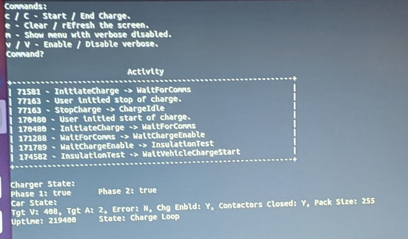 You need to give it power, then tell it ignition is on, then tell it the EVSE proximity is grounded noting it's locked, _then_ it will start charging. Also fought with some weird settings to get the terminal program going.