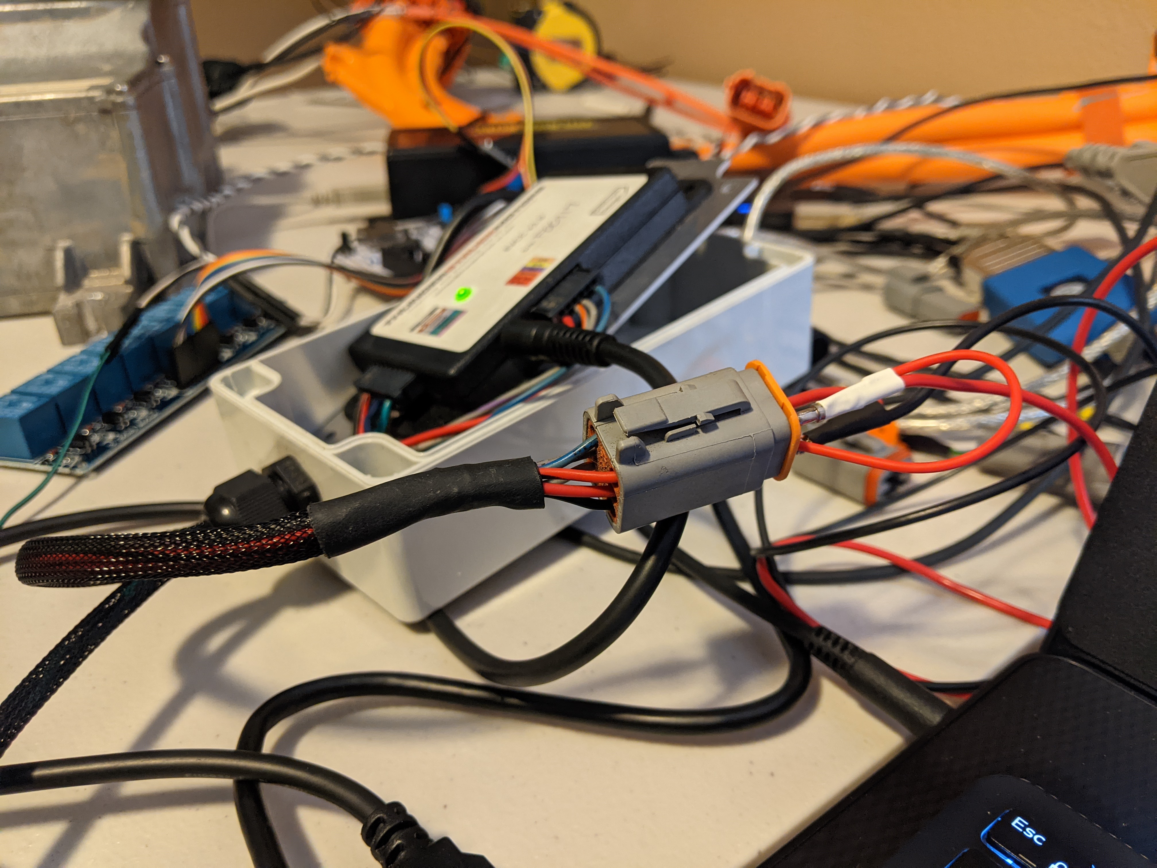 So now I have a messy desk, and am a bit stalled..but I think that tomorrow I'll get the AC side wired up, and I think I'll have CHAdeMO working. At least that's the plan. :D