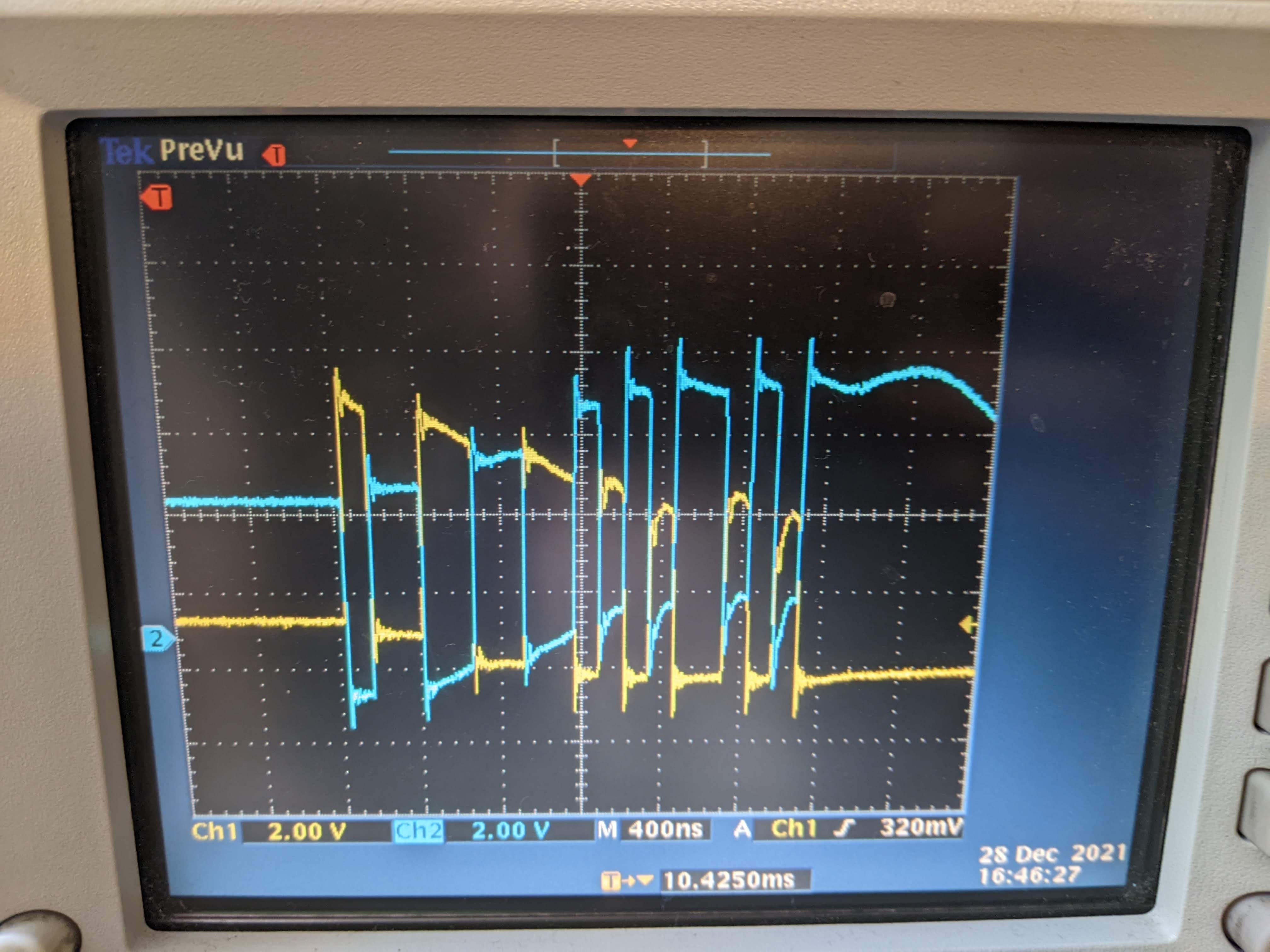 catphish wrote: Sat Jul 09, 2022 12:24 pm Waveforms as promised. Here's a capture of a multi-byte transmission followed by a single byte reception as seen at the differential receiver. The second capture is a close up of a received byte. The transforrmer is definitely making the pull resistors a lot more impactful, almost to the point where at the end of the byte the differential voltage is pretty small.