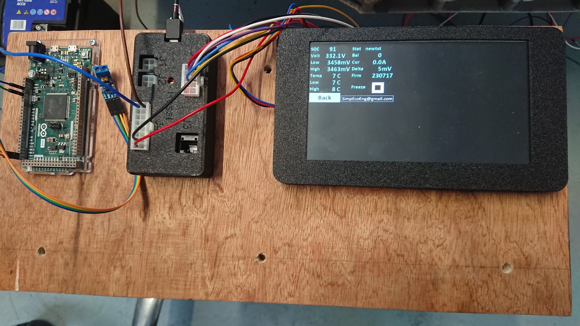 The benefit of the BMW packs, only a couple of hours got lids and casing removed, Tom's SimpBMS and a Nextion display screen connected up, and an Arduino Due running Damien's SBox control sketch. Shout out to Greg for his excellent videos on connecting to the BMW packs too!