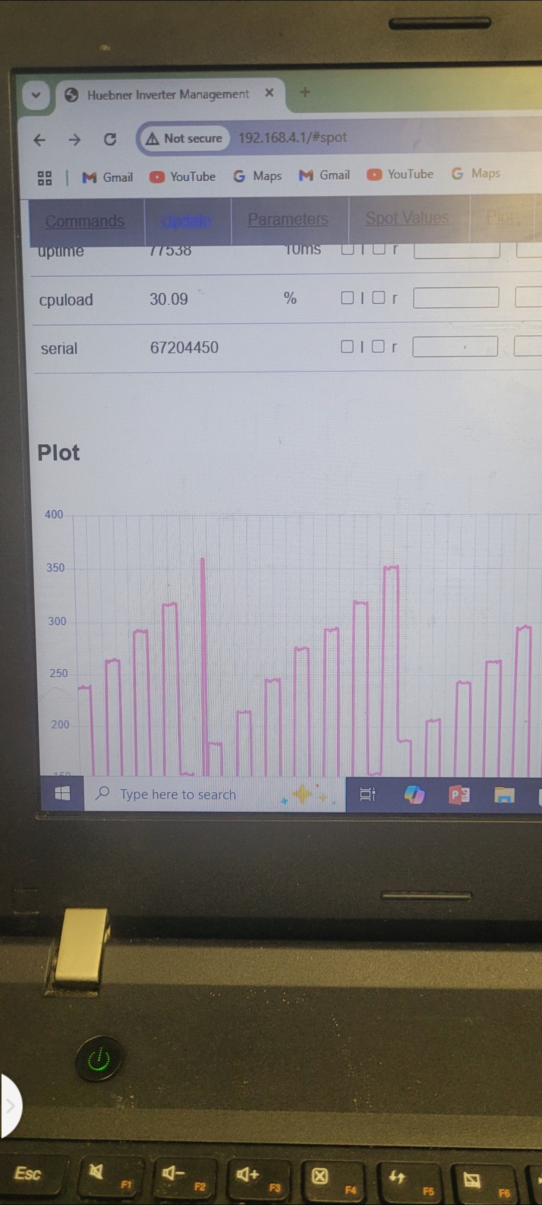 What I noticed was I had my "laster" on PRECHARGE, I don't know it it should be like that because as I followed the video and put in some of Damiens parameters, it changed to TMPMMAX and opmode at that time changed to RUN. During that stage the light bulbs connected on the inverter output stopped blinking meaning the was no PWM coming out.