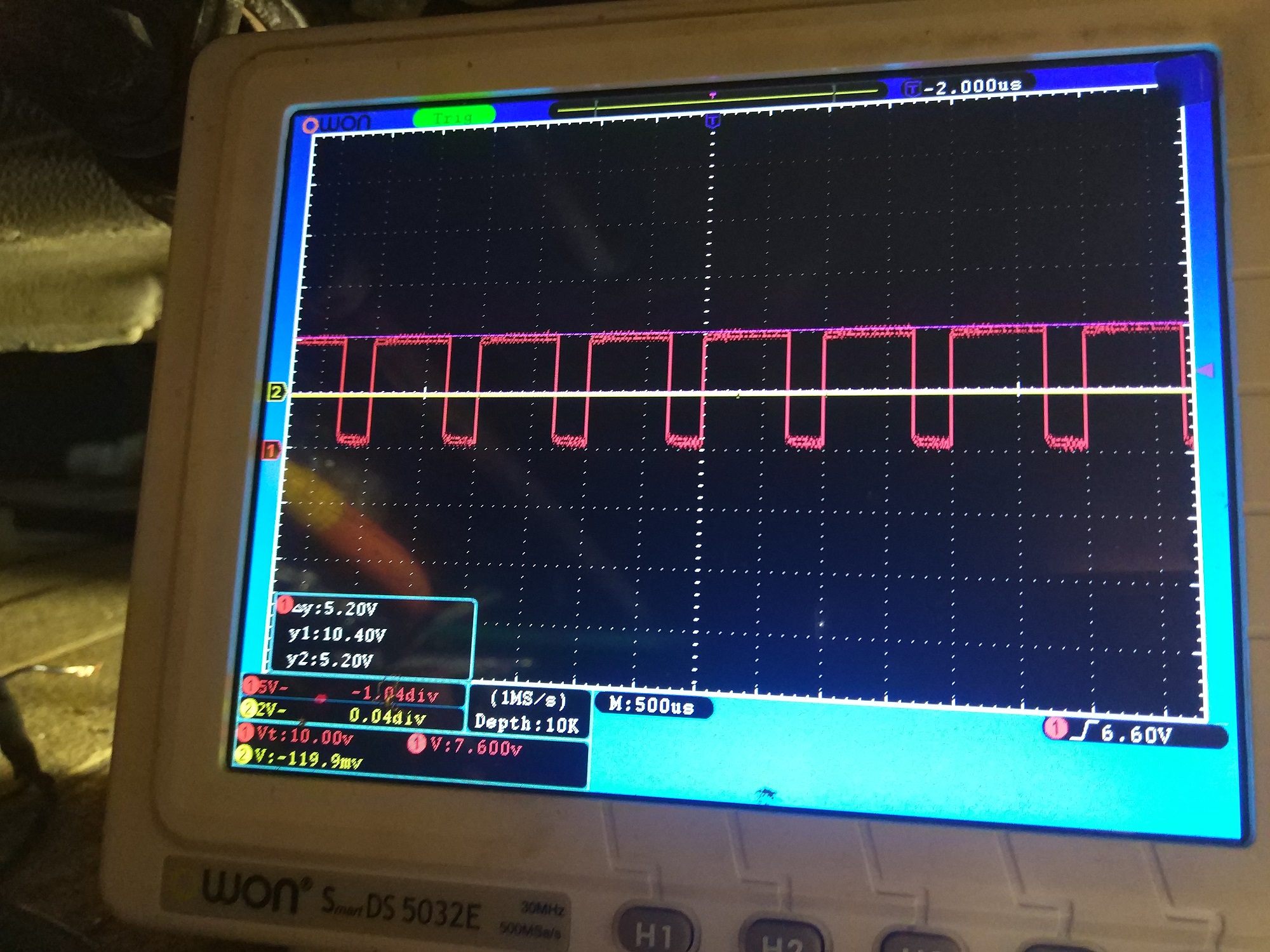 Next i took my pulse generator and first made 12V peak to peak function. I got both of the chargers ON! Good. Then i adapted the weave form so it was 5V to 0V PWM as it would be with signal from transistor. If i kept signal at 5V second charger would work good. But if i would lower this to 4V charger would release CP.