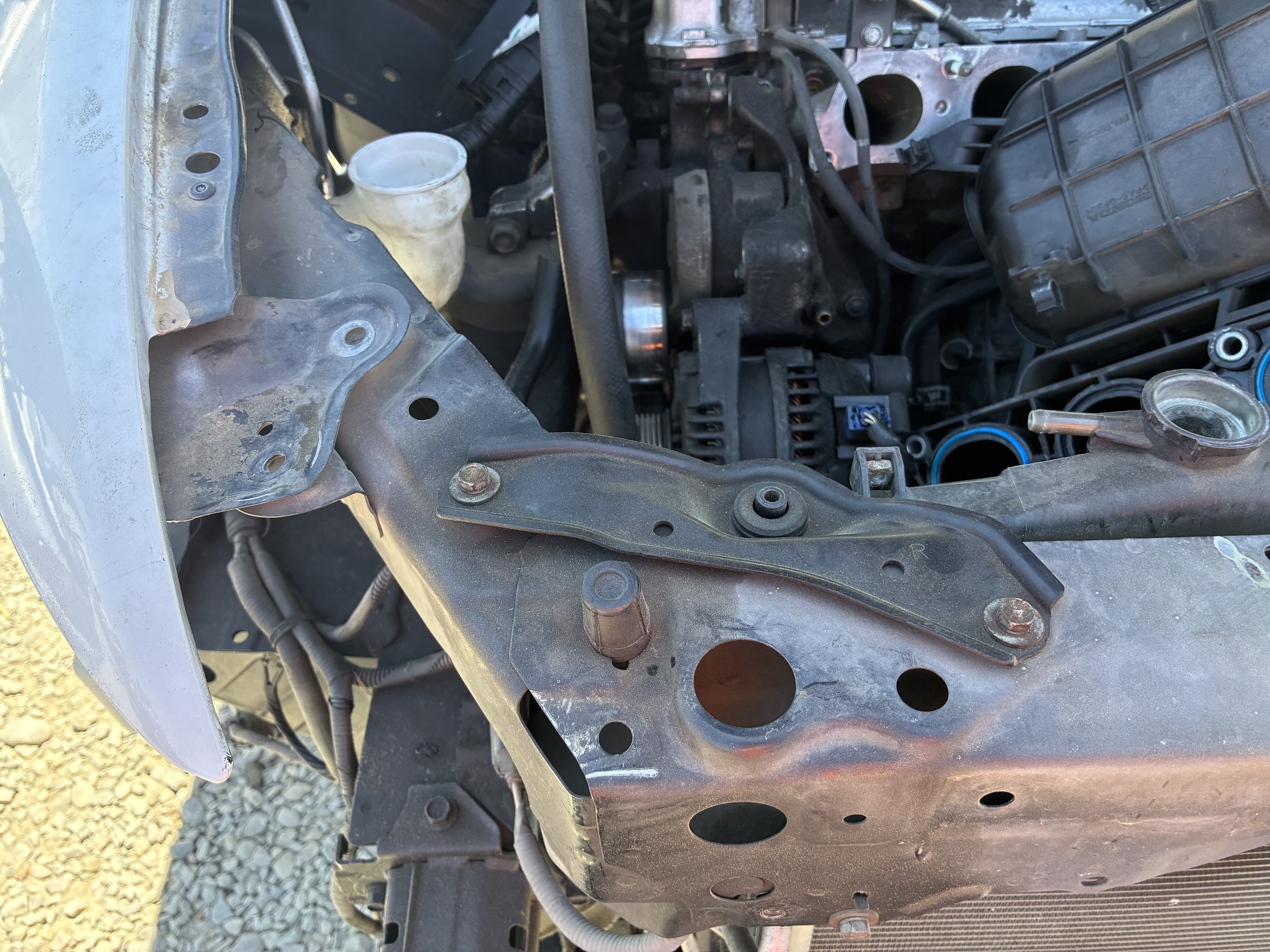 spent the last couple weeks [pronounced: "months"] bangin' my head against a brick wall trying to figure out how to mount that Nissan Versa radiator in the truck with the least amount of fabin' and fandangling, came up with all sorts of excuses not to work on the truck in the process, and amassed a potpourri of random and not so random OEM radiator brackets in the process