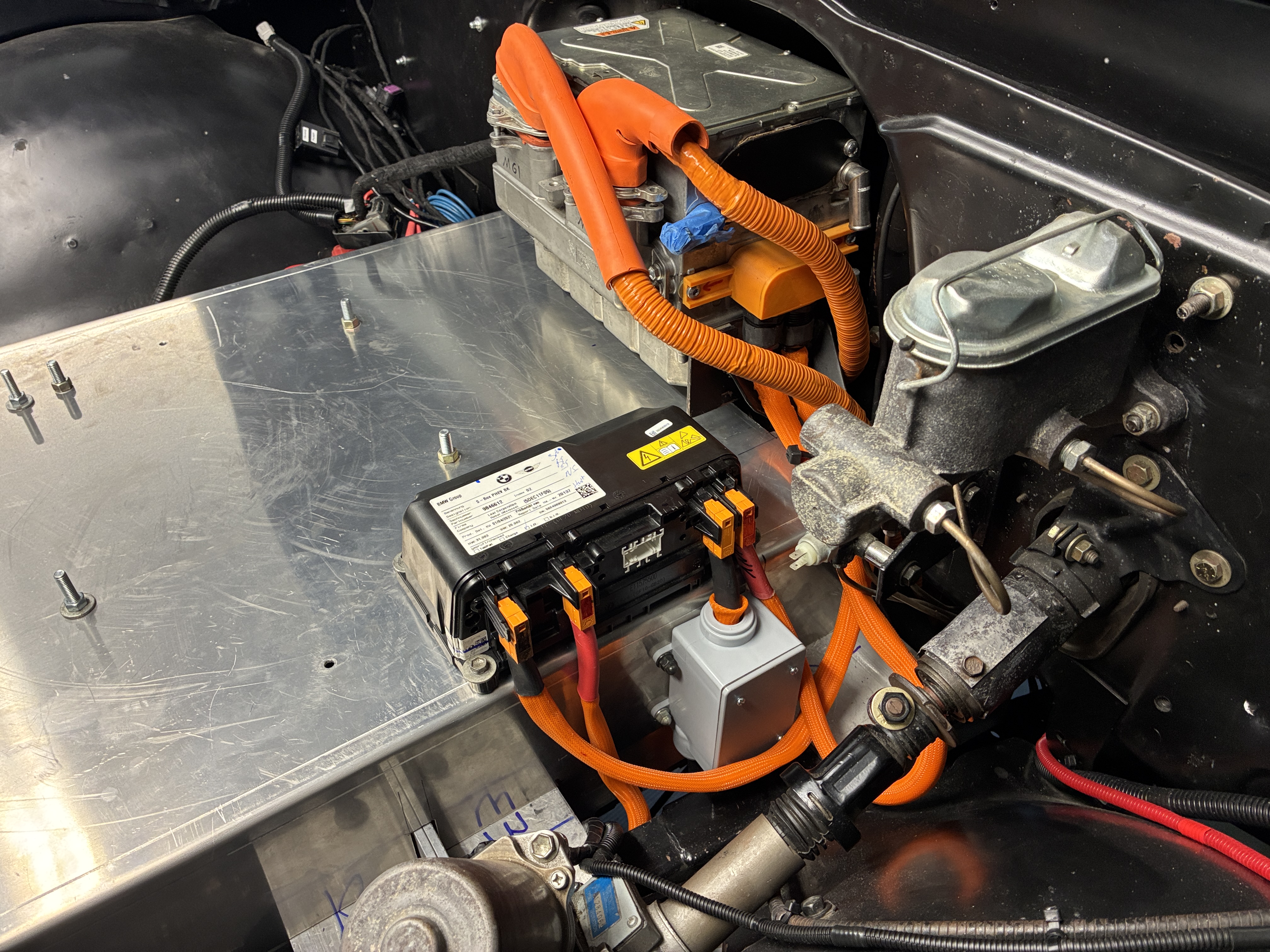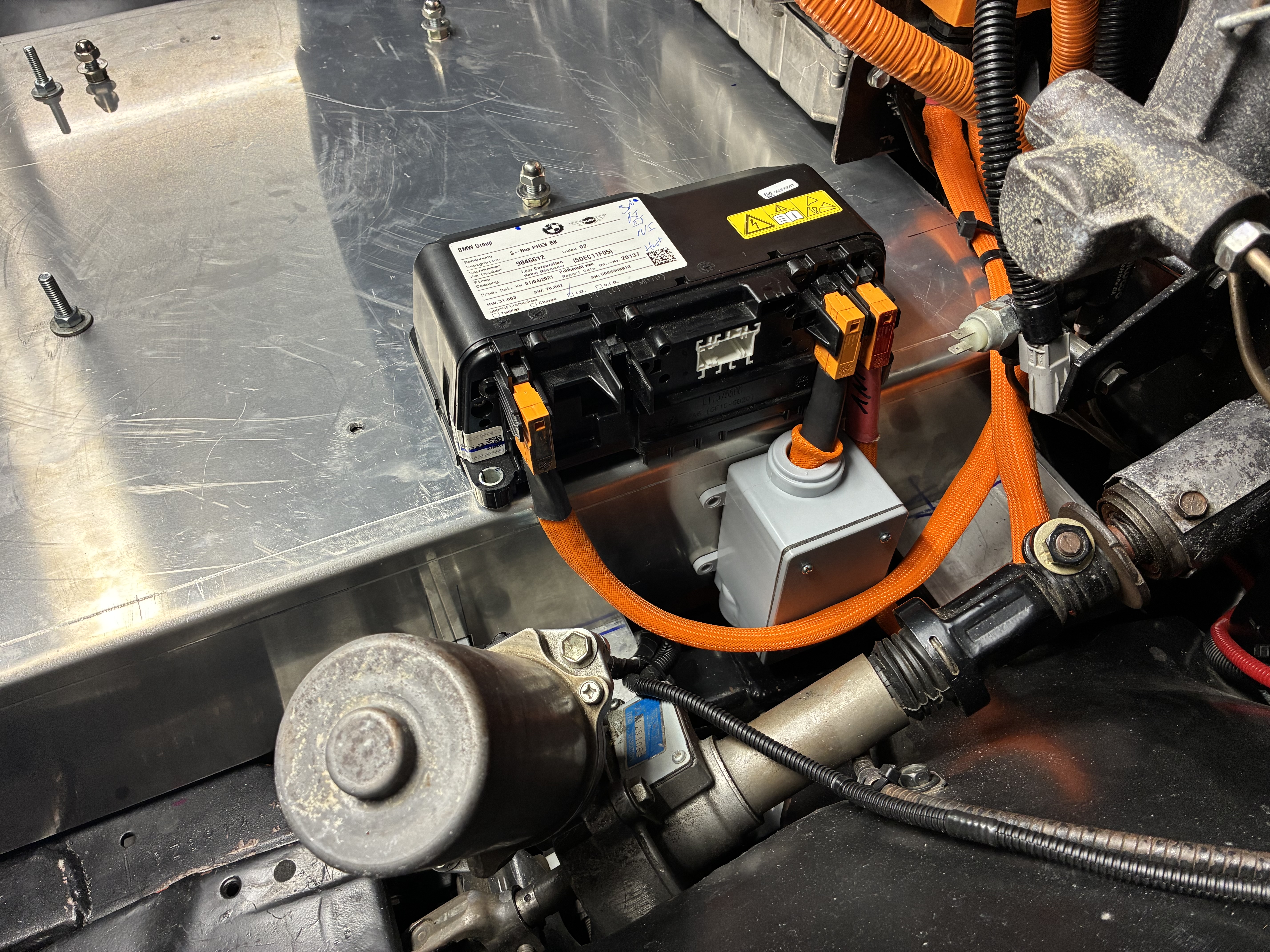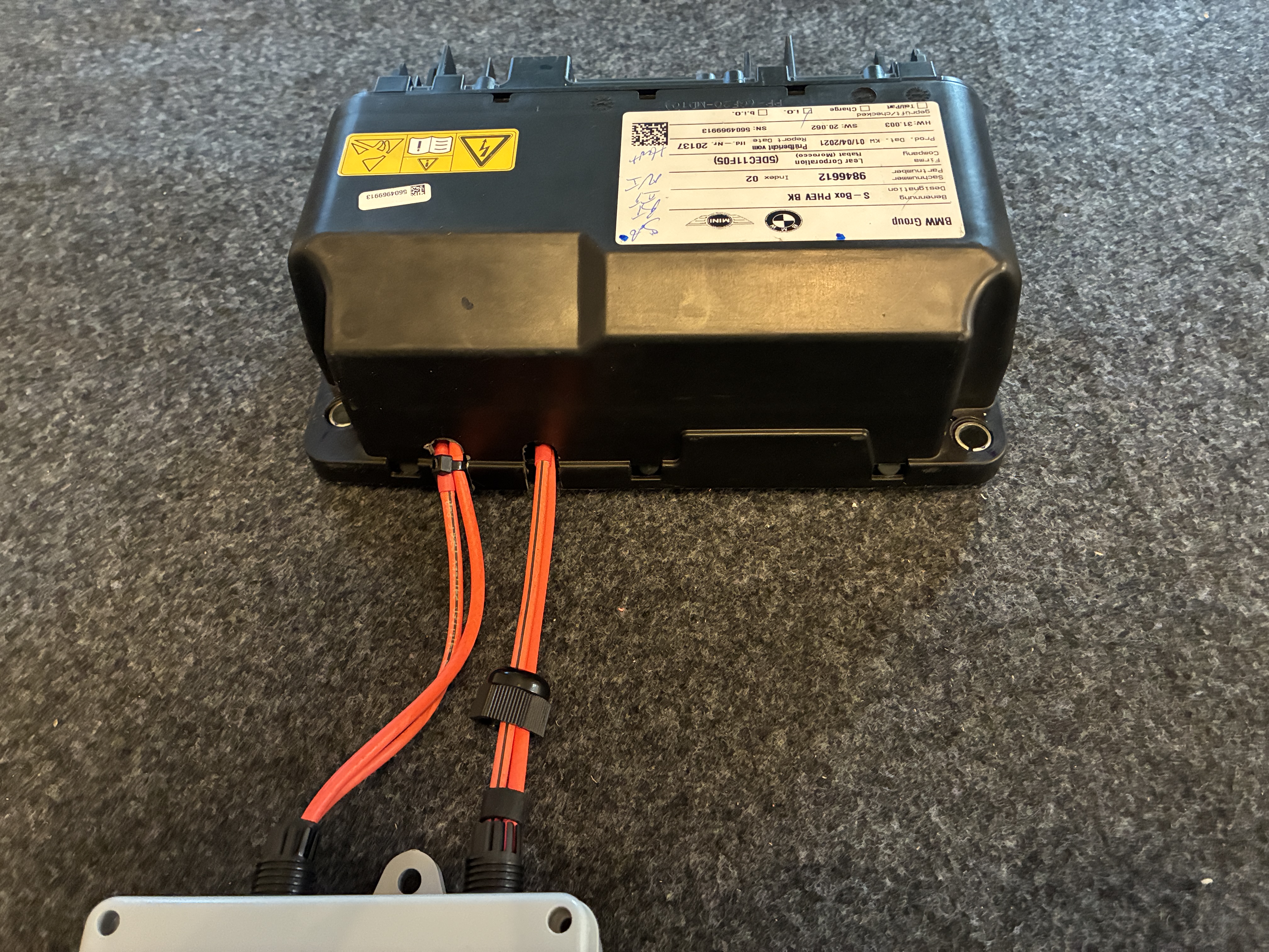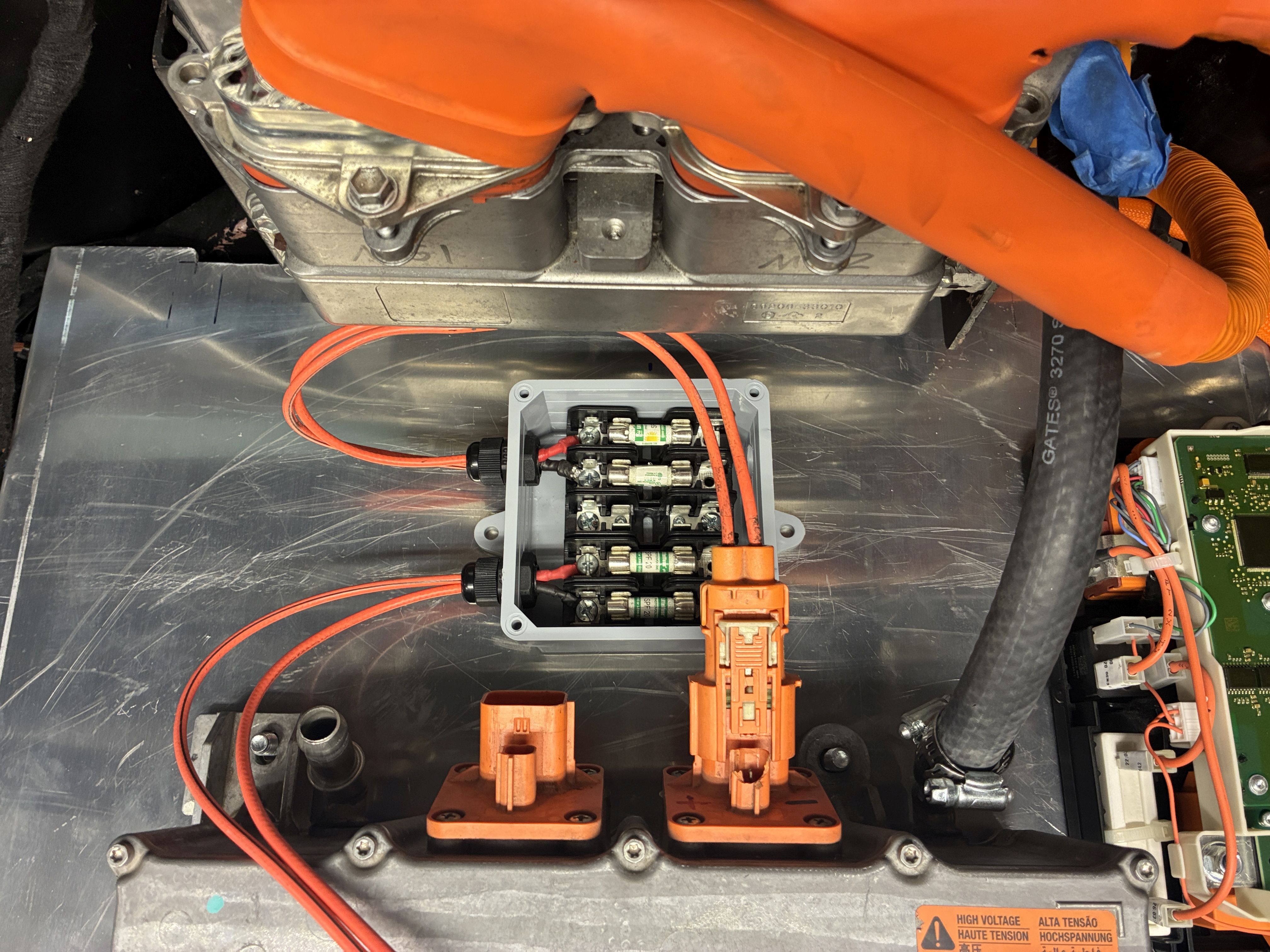 anywho, I managed to chimichanga the high voltage connection via a Cantex junction box to the BMW sBox, this box joins the two negative leads from the two BMW 530e packs into one, simple is the name of the game