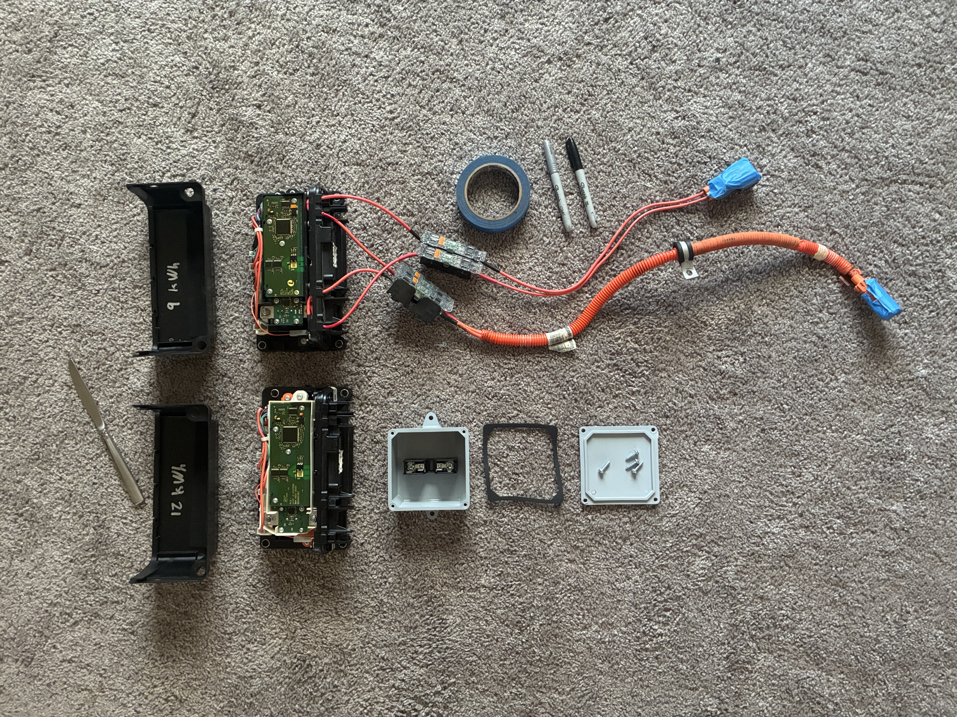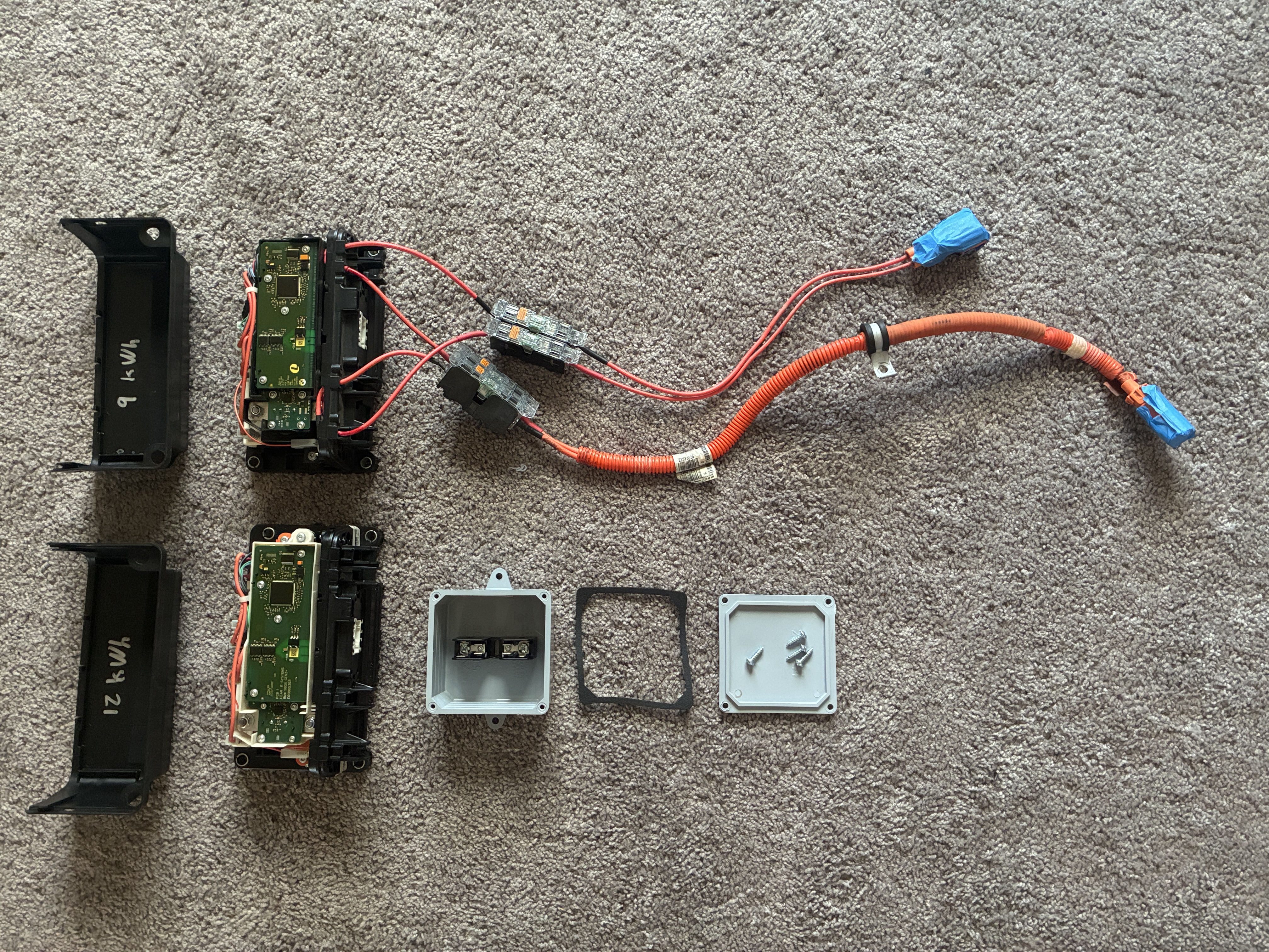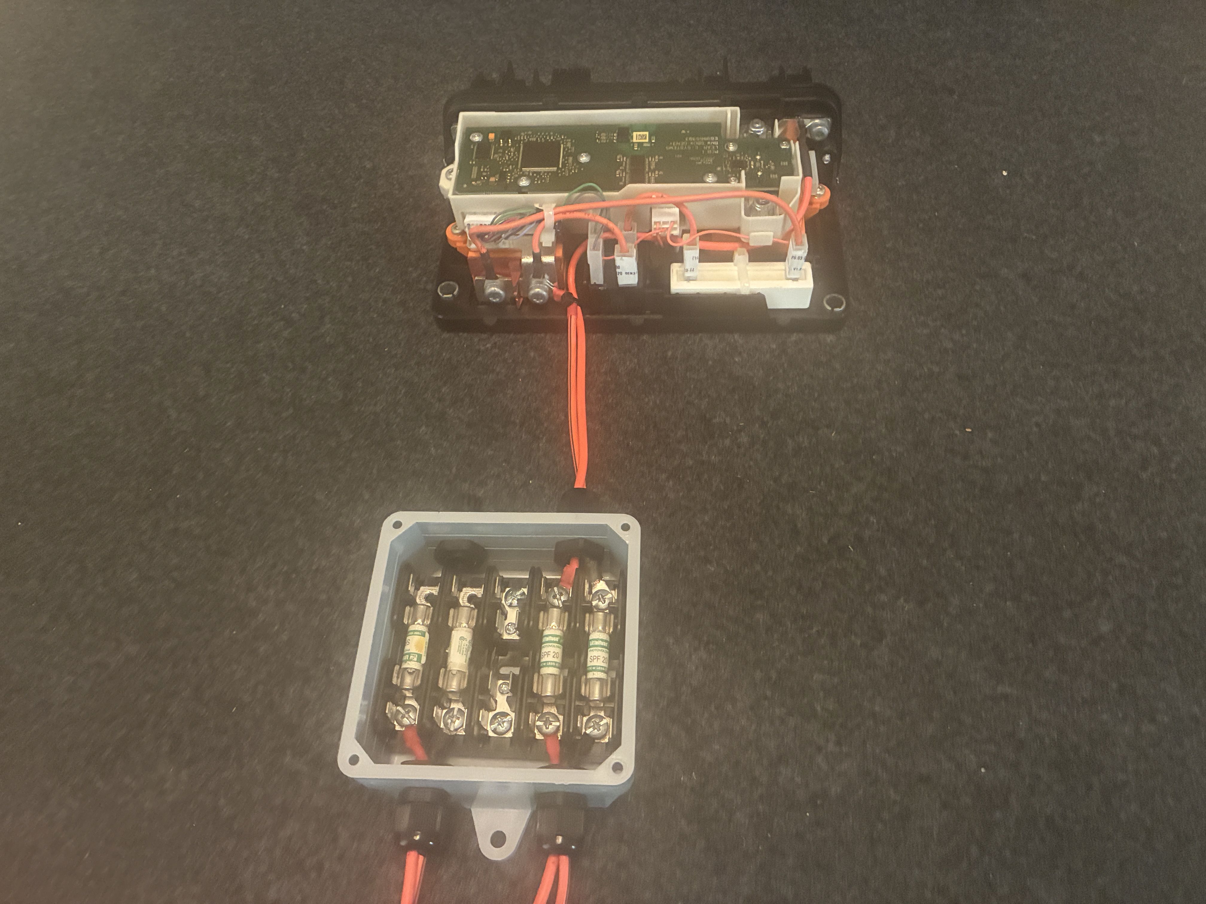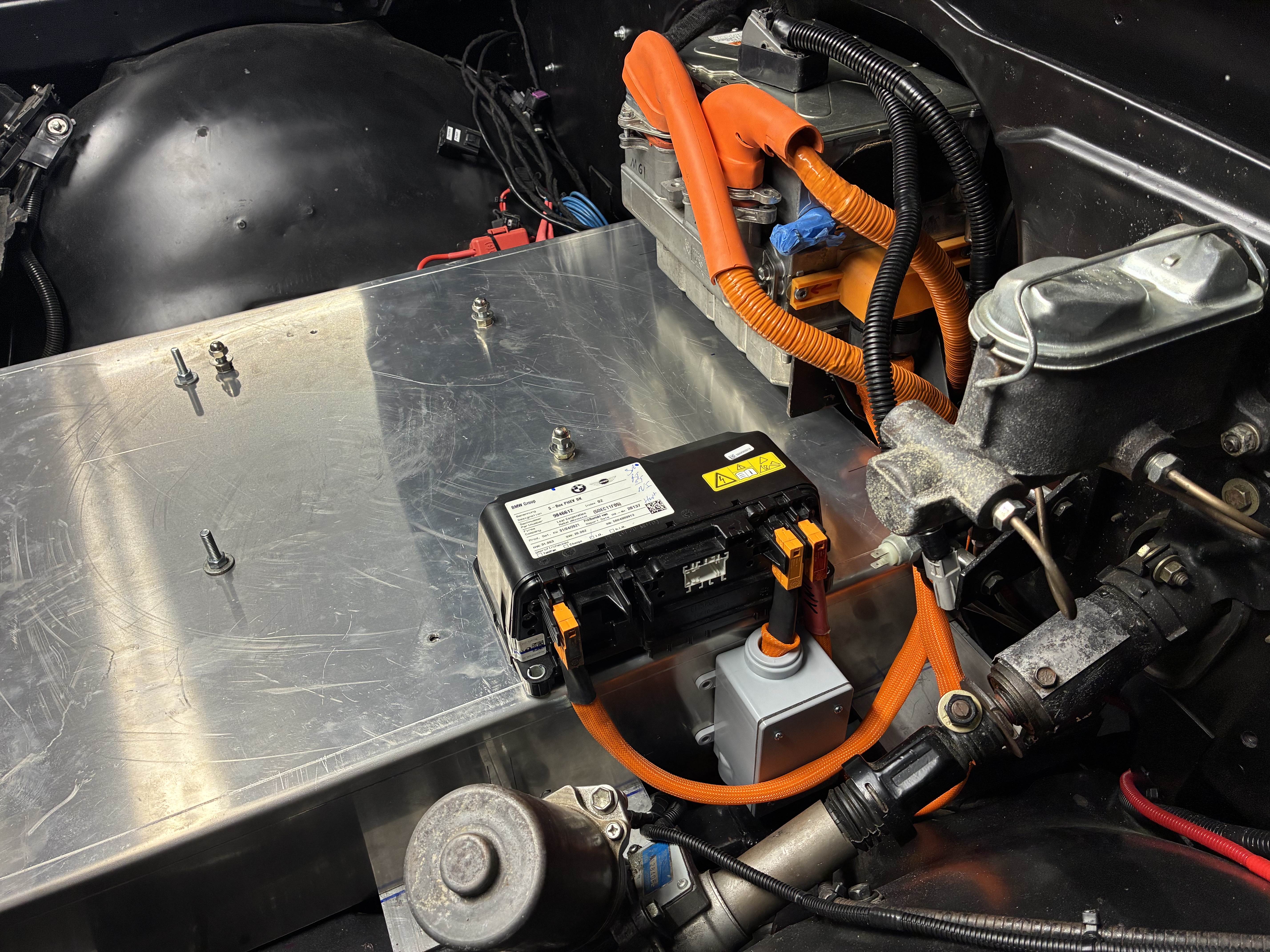 anywho, I managed to chimichanga the high voltage connection via a Cantex junction box to the BMW sBox, this box joins the two negative leads from the two BMW 530e packs into one, simple is the name of the game