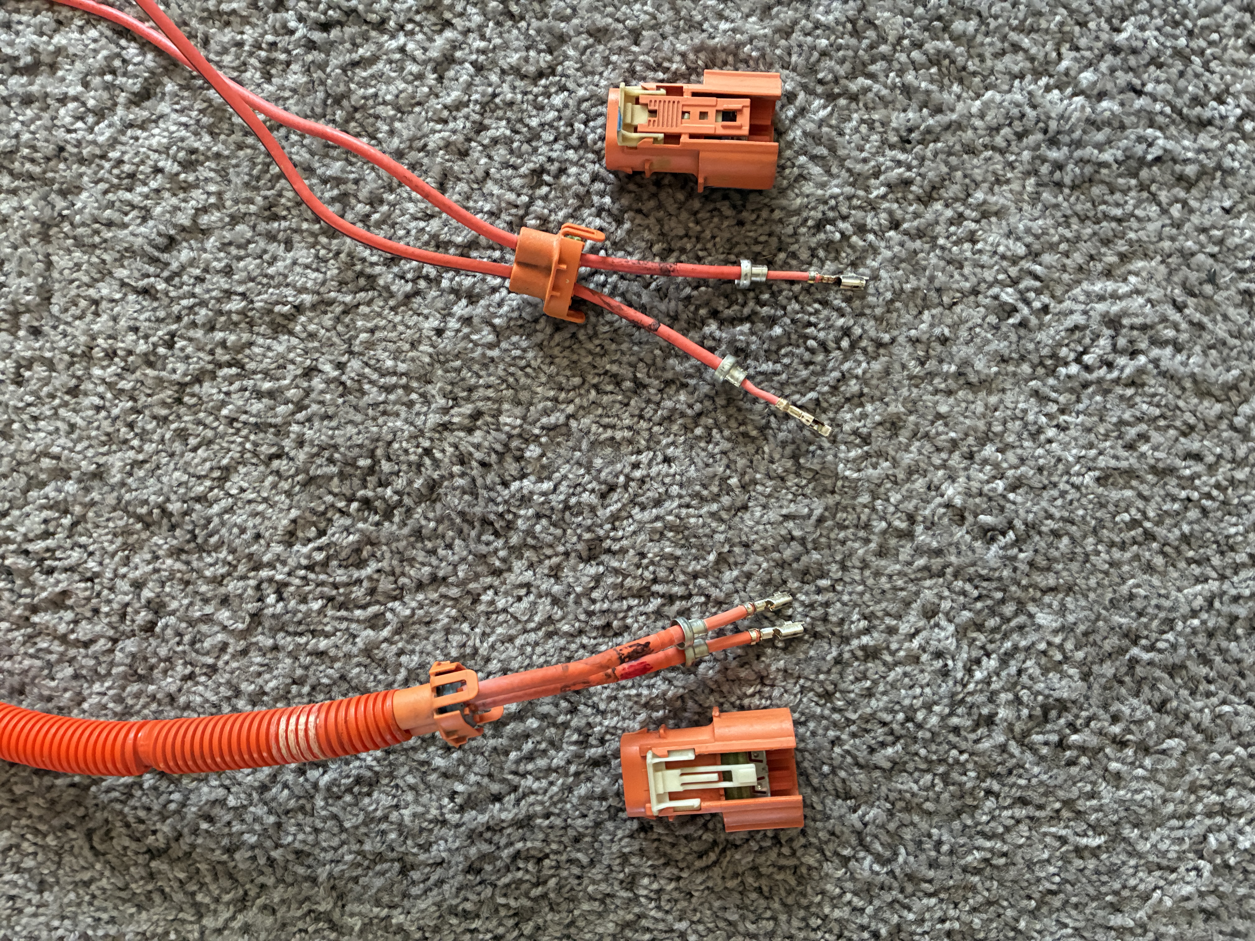 so of course the 1st Gen Chevy Volt DC-DC cable was now 5" too short so the Harness Man had to do a little cable swap-a-roo with a spare charger cord to extend them, I hate to brag but 5" makes all the difference