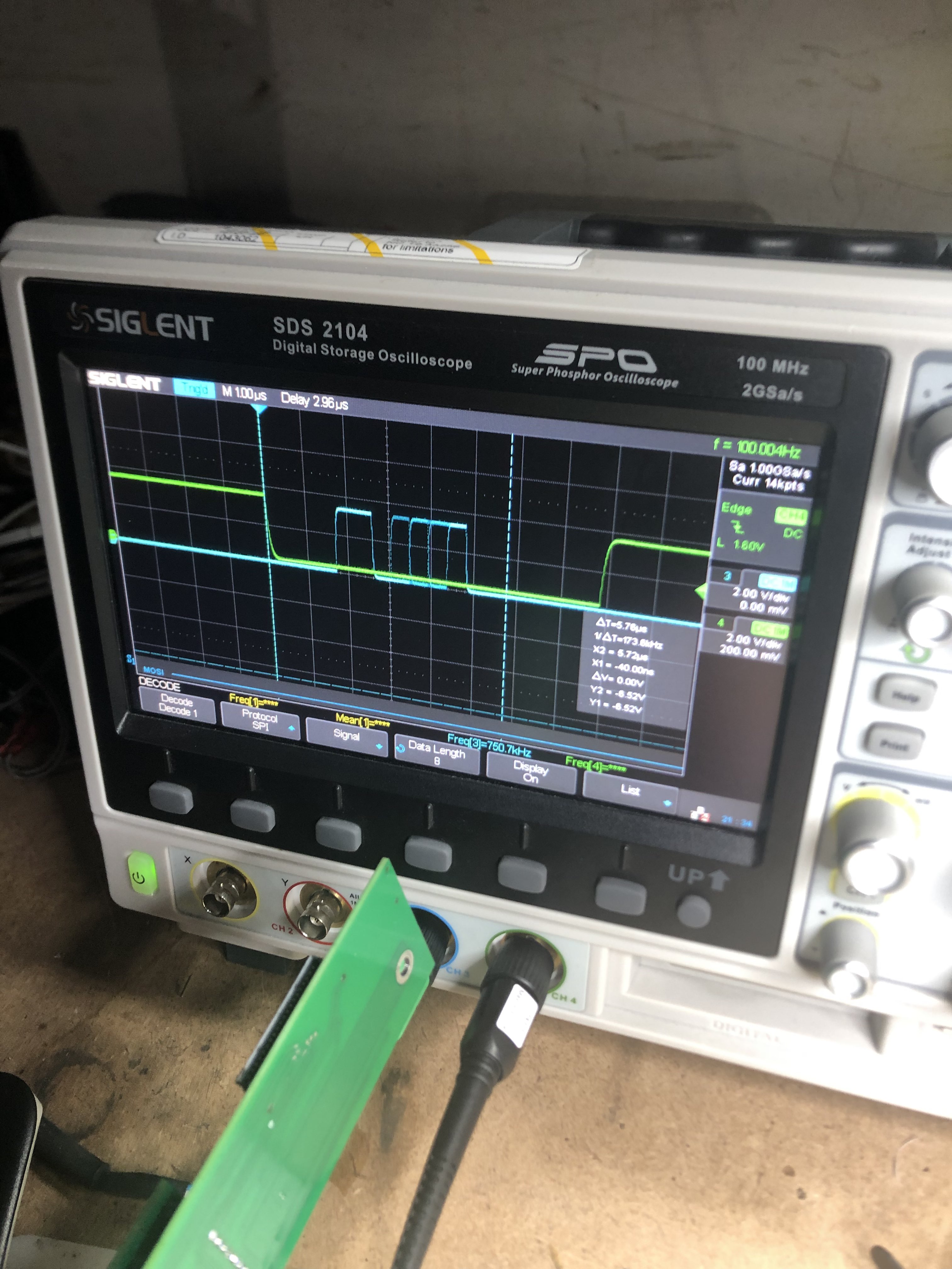 I will say that I measured SCK before and after the line driver with the scope. The “low” level was too high and causing the line driver to be in a constant “high” state without the bypass wire. I’m planning on putting a 100 ohm resistor in parallel with resistor 3 of RN1 to provide some impedance protection to the output of the STM32, but still low enough so that the voltage waveform is okay for the line driver “low” input level.