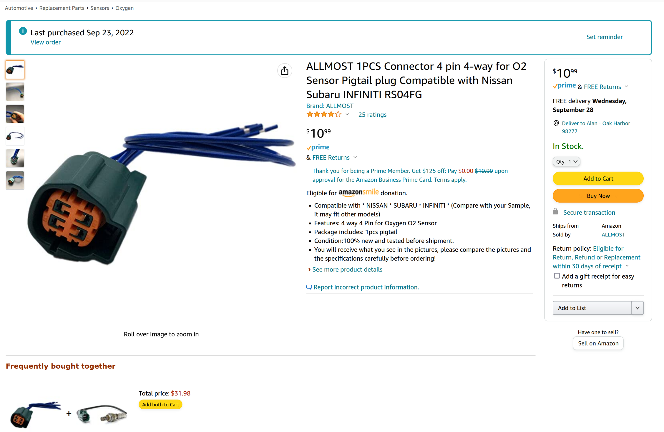 Didja know that Nissan/Subaru O2 sensor connectors fit this Tesla Model S coolant pump. I just received one from Amazon, $11, and it snaps right in place.