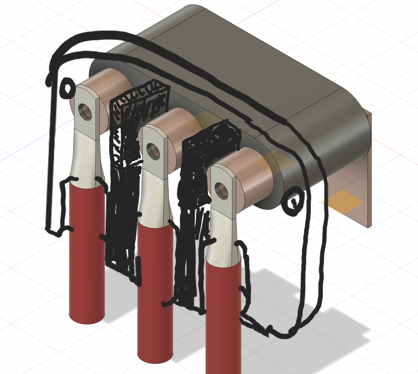 Yes adding spacers like this between the wires sounds good. I might just steal the idea of using those threaded cable passthroughs used in the linked product for waterproof connections.jrbe wrote: ↑Thu Jun 26, 2025 11:56 am This is what pops into my head I drew the phase wire section a bit too tall, keep it short but effective to not get into vibration induced fatigue / failure where it overhangs. If you get the spacing right you could use a silicone to seal the wires to the adapter & cover.