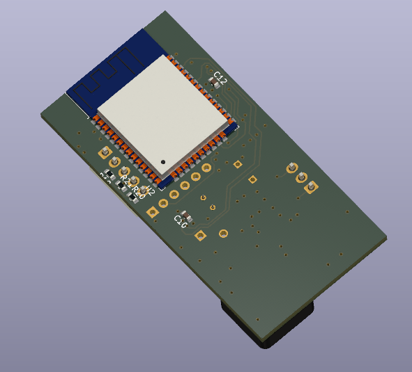 The external ESP board is now all routed. Decided not to bother with a box so no mounting holes as it's only 30x60mm. It will just be covered in heatshrink instead. The battery is soldered rather than replaceable now as calcs showed it should last over 10 years. Revised schema and PCB views below.