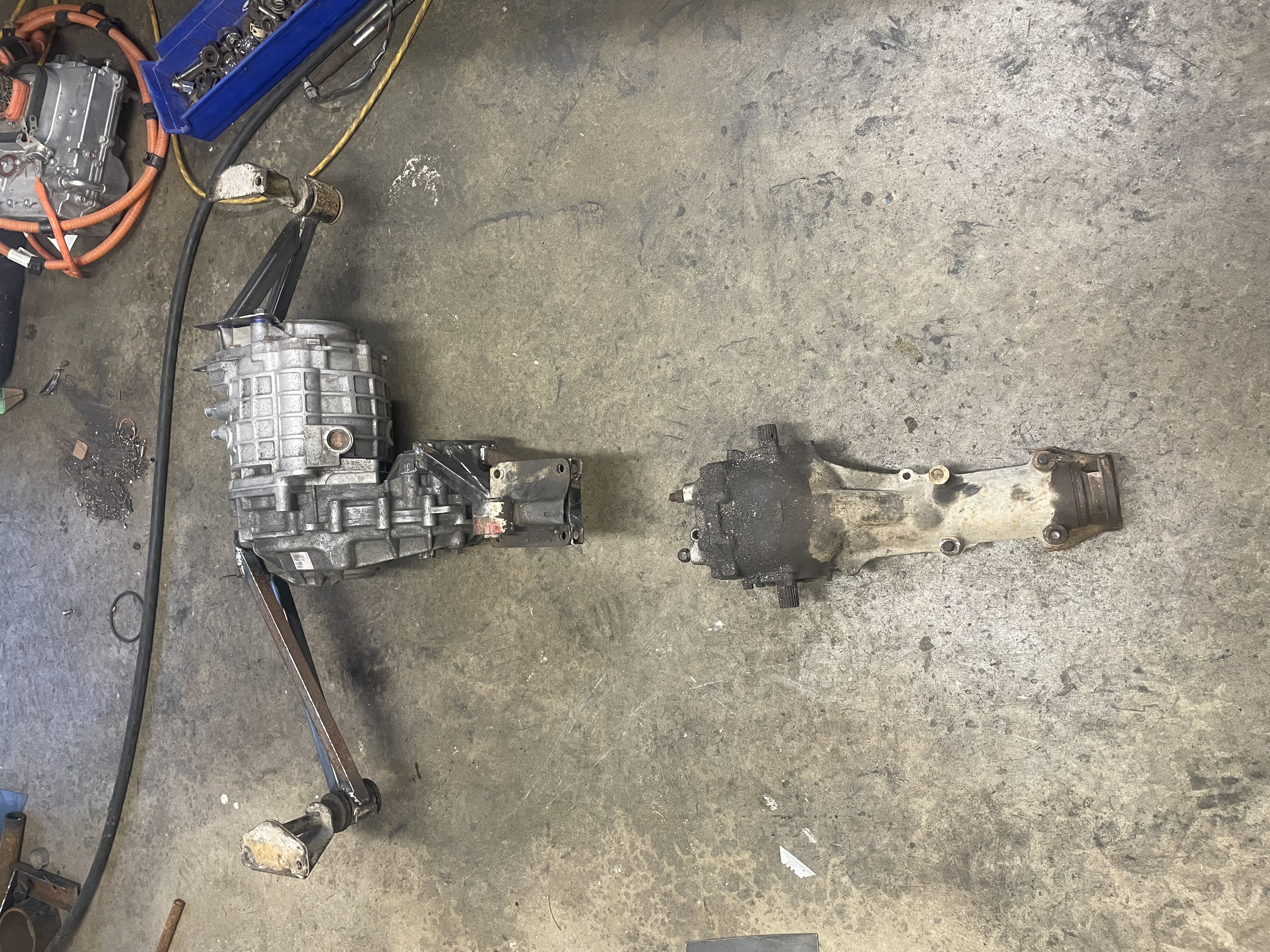 Built a jig and welded up the new mounts remotely and then brought the parts to the brat. not perfect but it’s in. Next up axles, then I can pull the original gearbox and leaf motor and loose a couple hundred lbs!