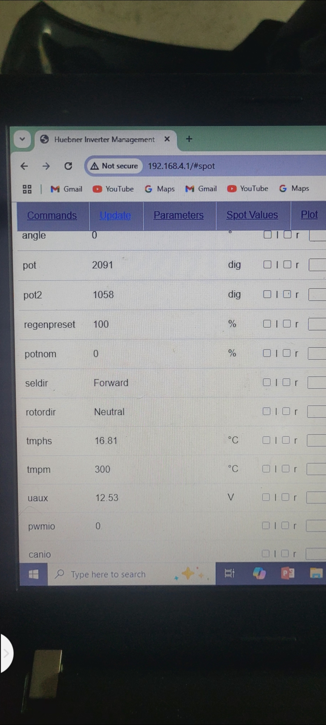 Below I've attached my entire spot values, please go through and check for all the settings you want to see pot1 and pot2 and any other that are important for testinh stage.. Also please check for faults that might appear.