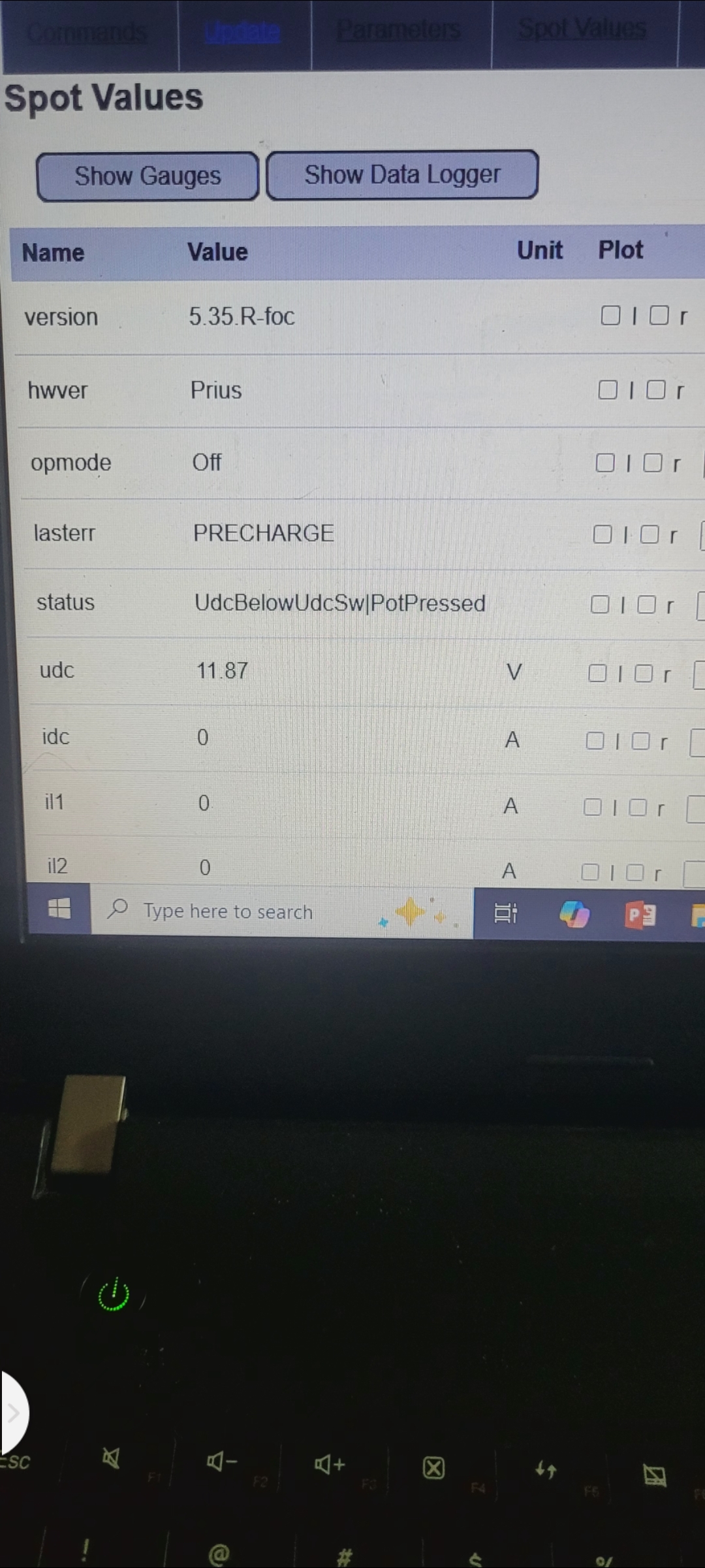 When I had the throttle connected STATUS on spot values first showed "PotPressed" and on another test it said "UdcBelowUdcSw|PotPressed" .