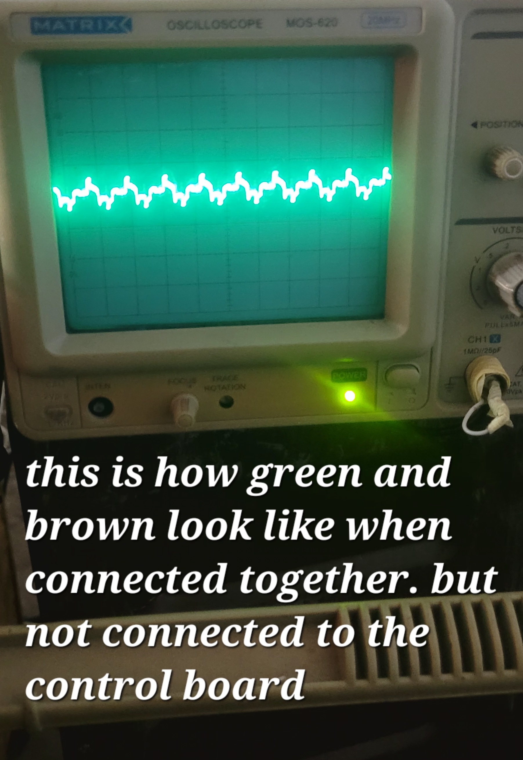 I did, just that I didn't post the outcome. What I noticed was that the straight line that appeared on the scope when I had connected brown and red to pin 2 of control board, when I turned the transaxle by hand the straight line didn't change but the faint waveform that appears noisy on the background of it seemed to be moving when the transaxle was also moving.