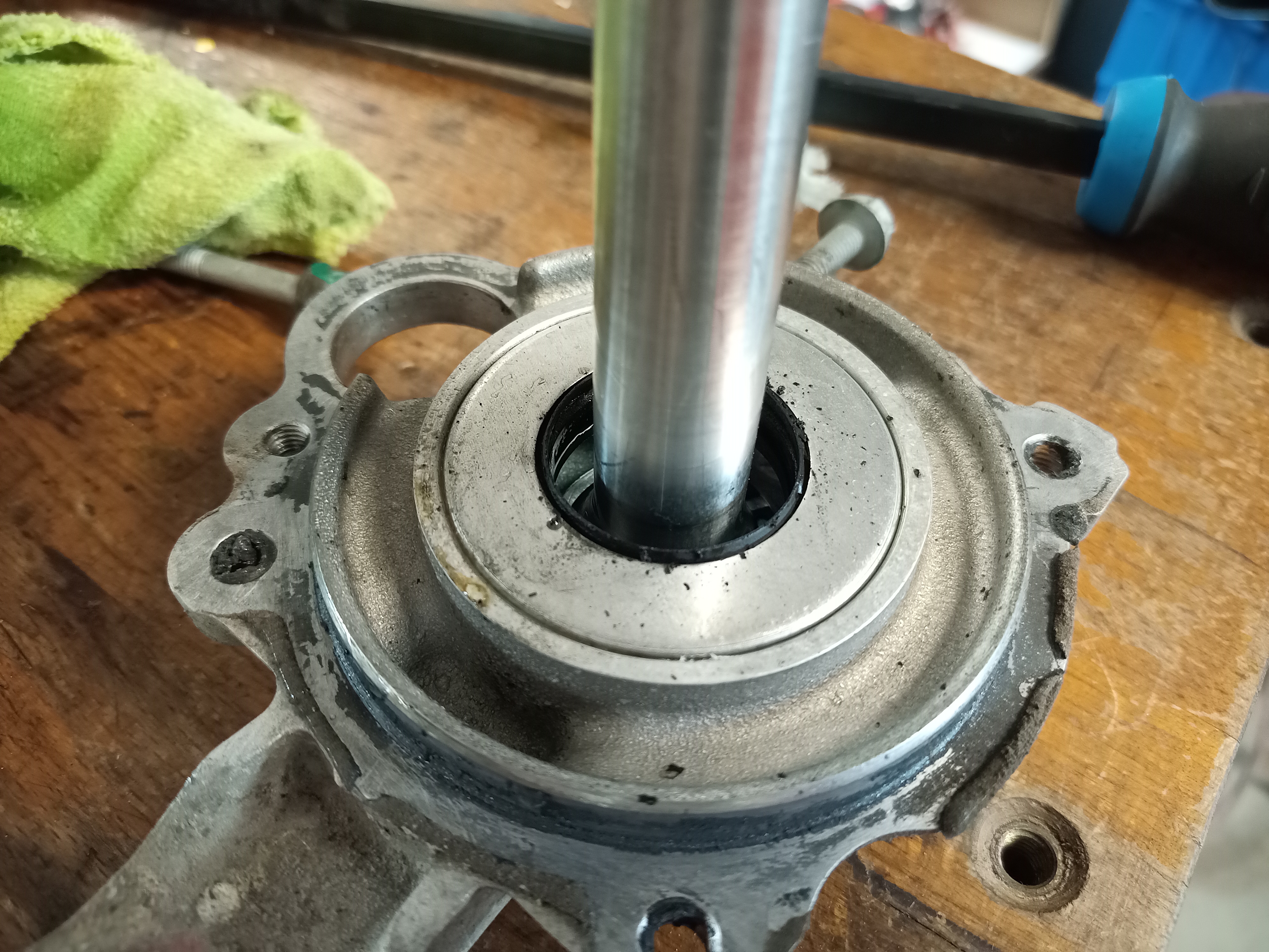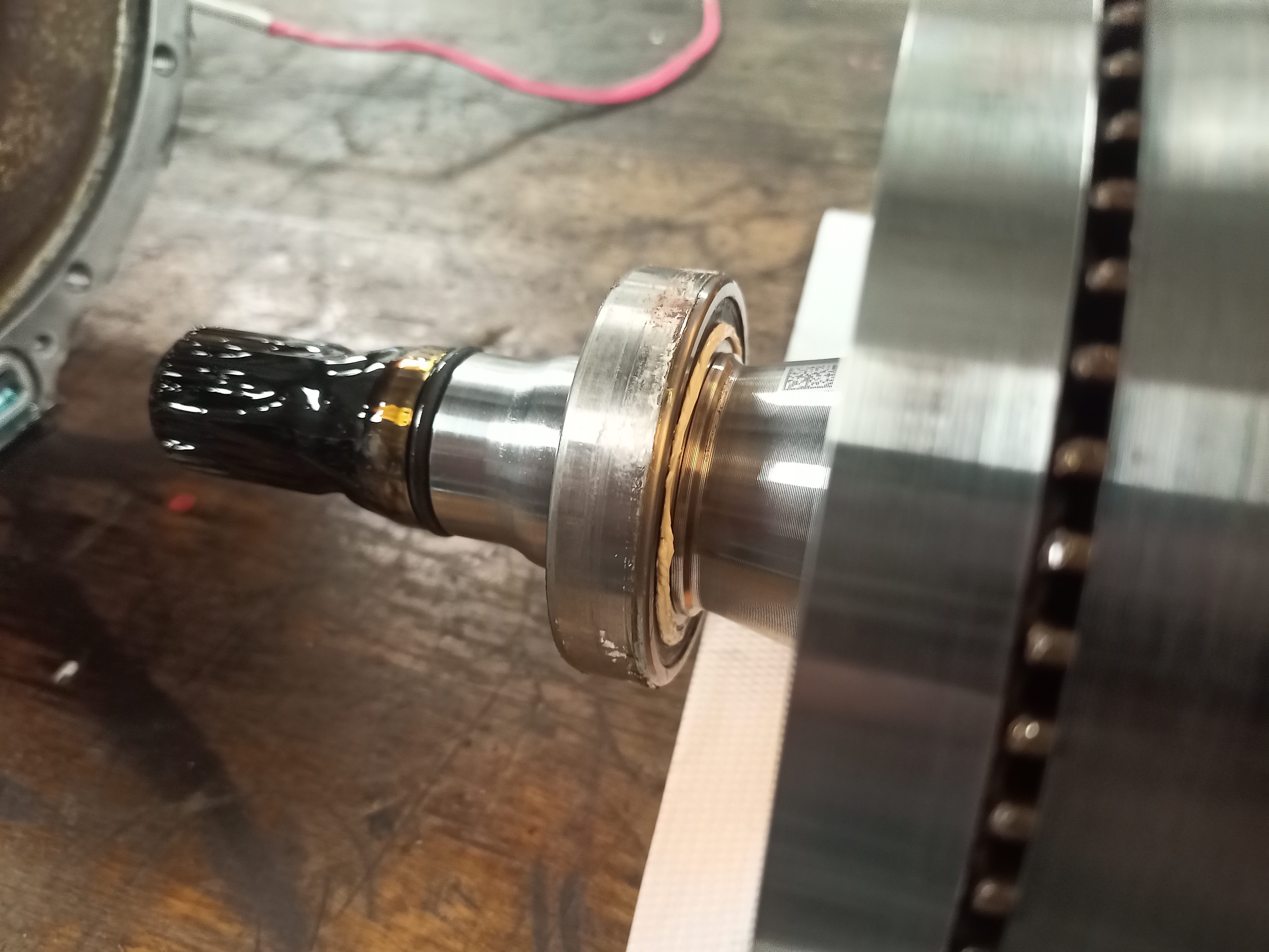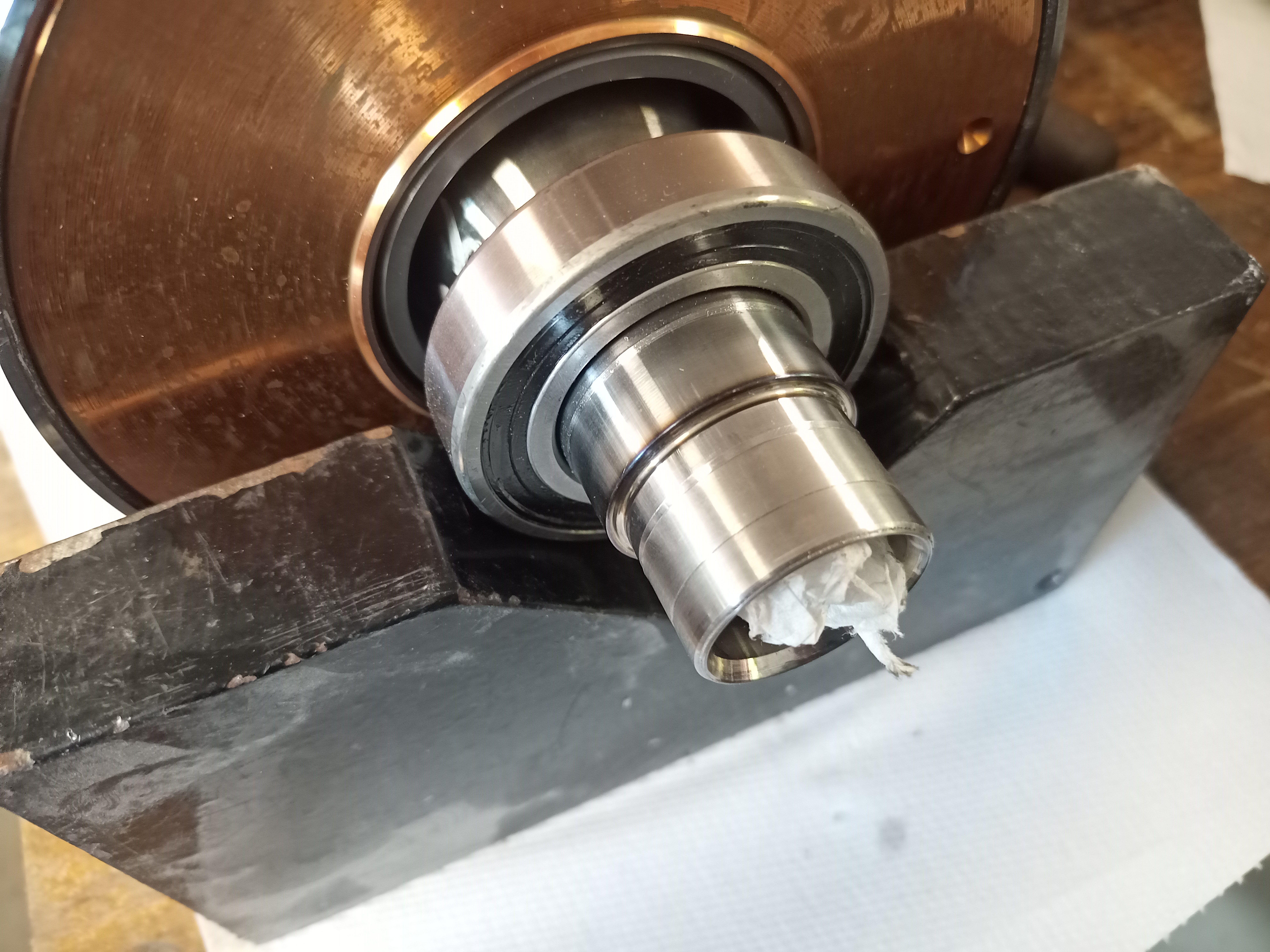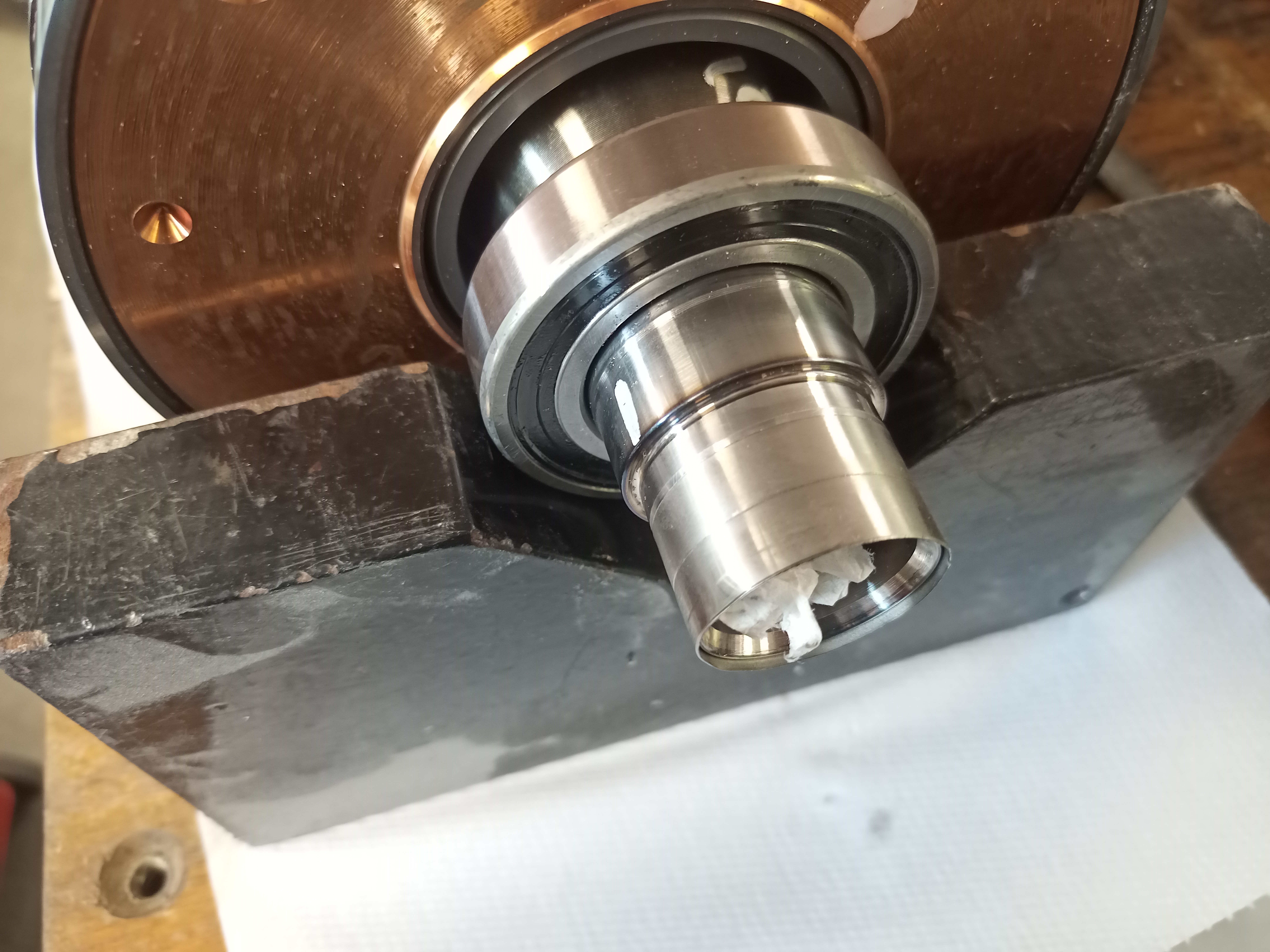 Fresh bearings and two sleeves fitted. The sleeve is grinded flush with the rotor.