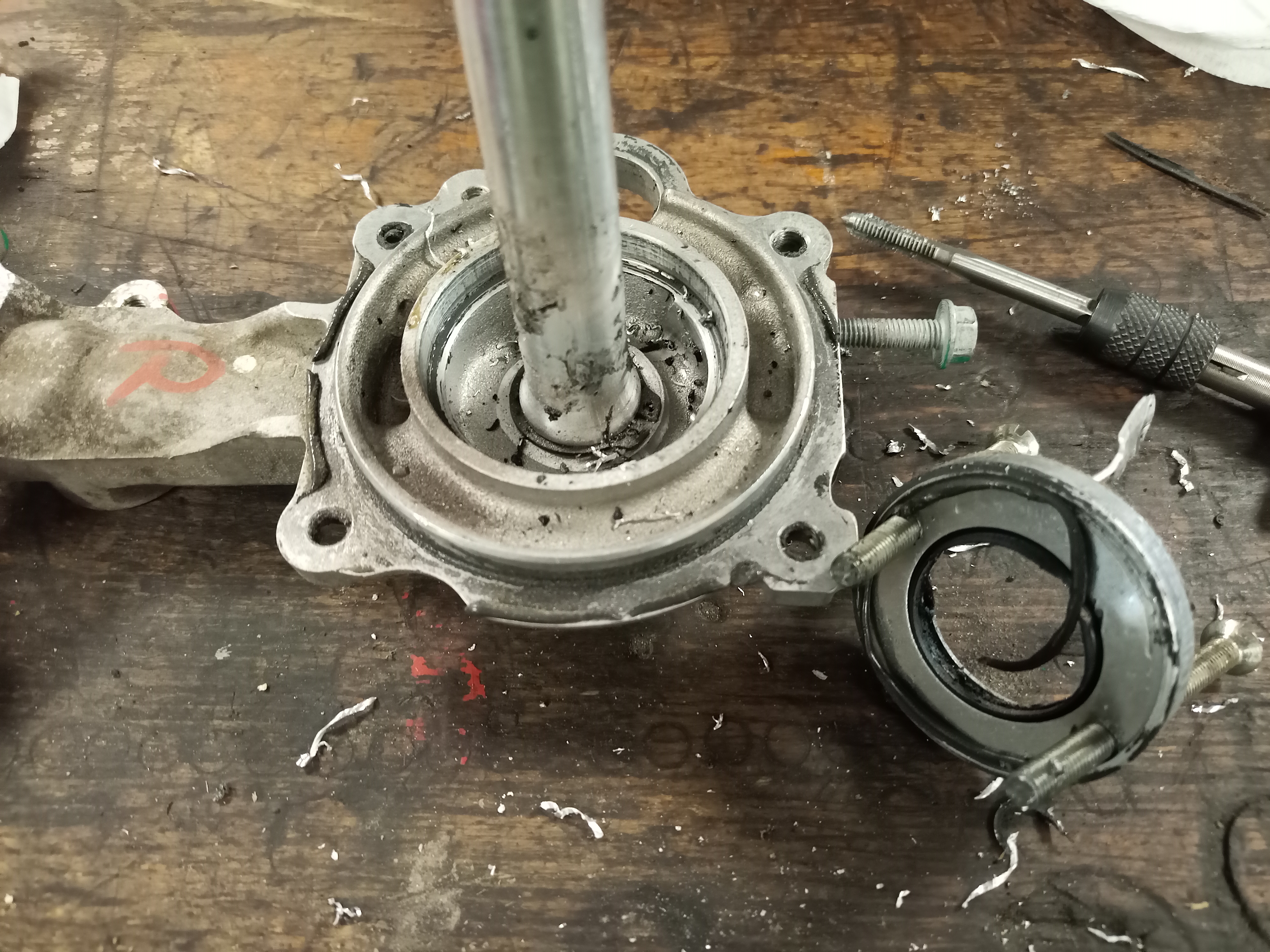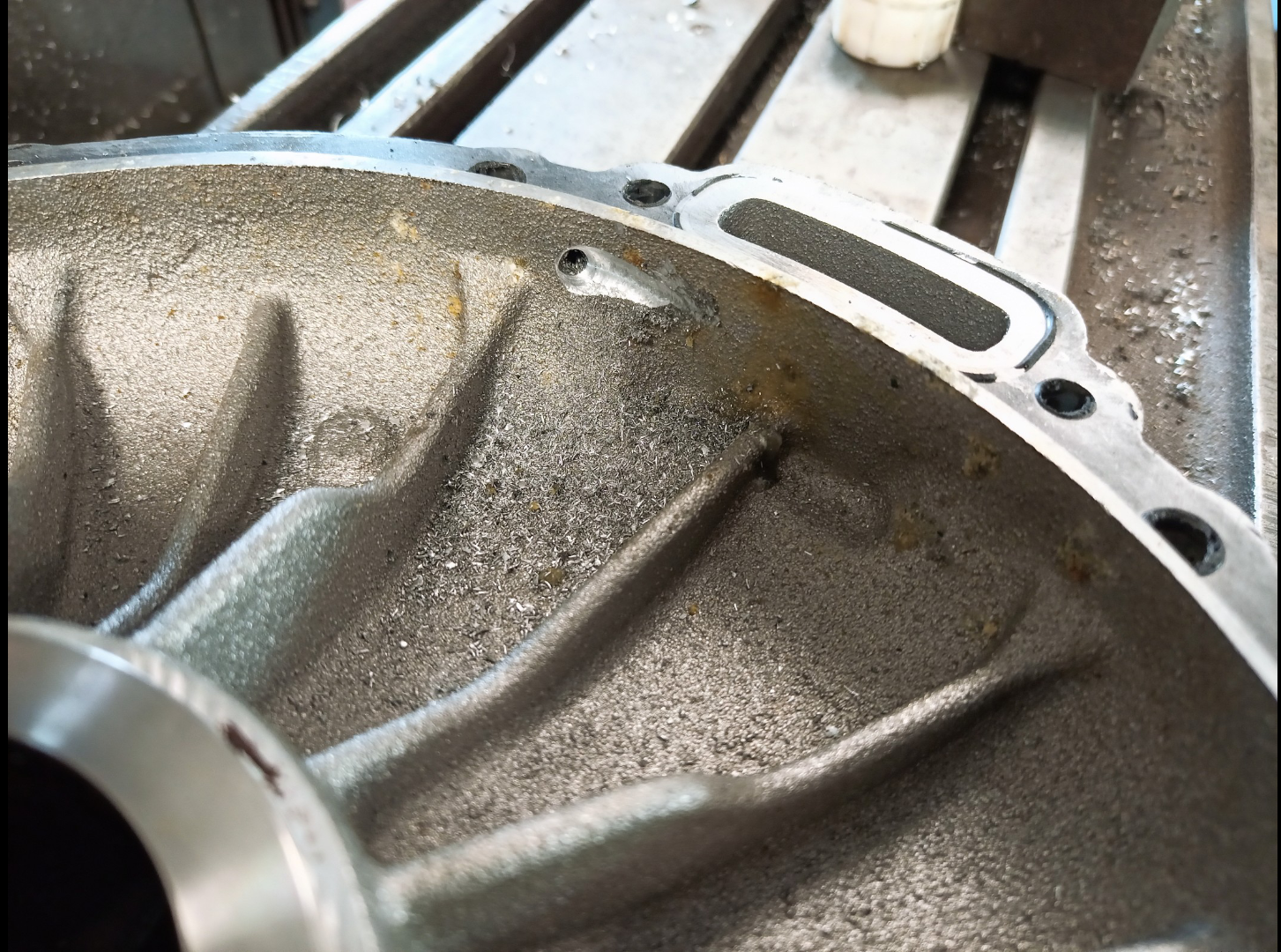 He also tapped a drain in the tunnel (need to take a closer look), bottom of motor cavity end plate and reluctor chamber of course.