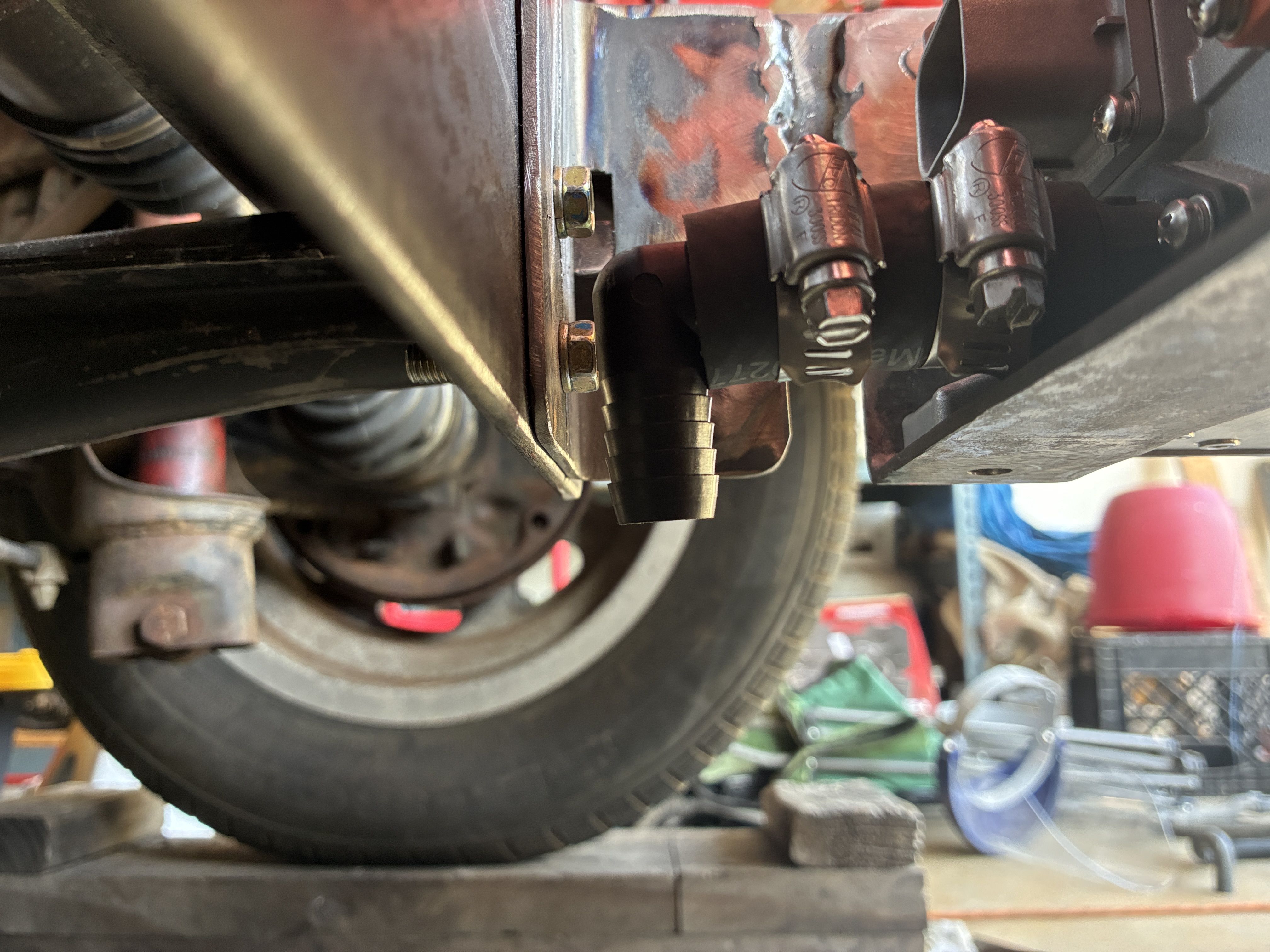 one of the things I don't like about this Ding Dong charger is that it's cooling ports are closer to 3/4" so slightly larger than all the other components (inverter, radiator, water pump) which have 5/9" ports, so I needed to order some reducers and since space was tight they had to be elbow