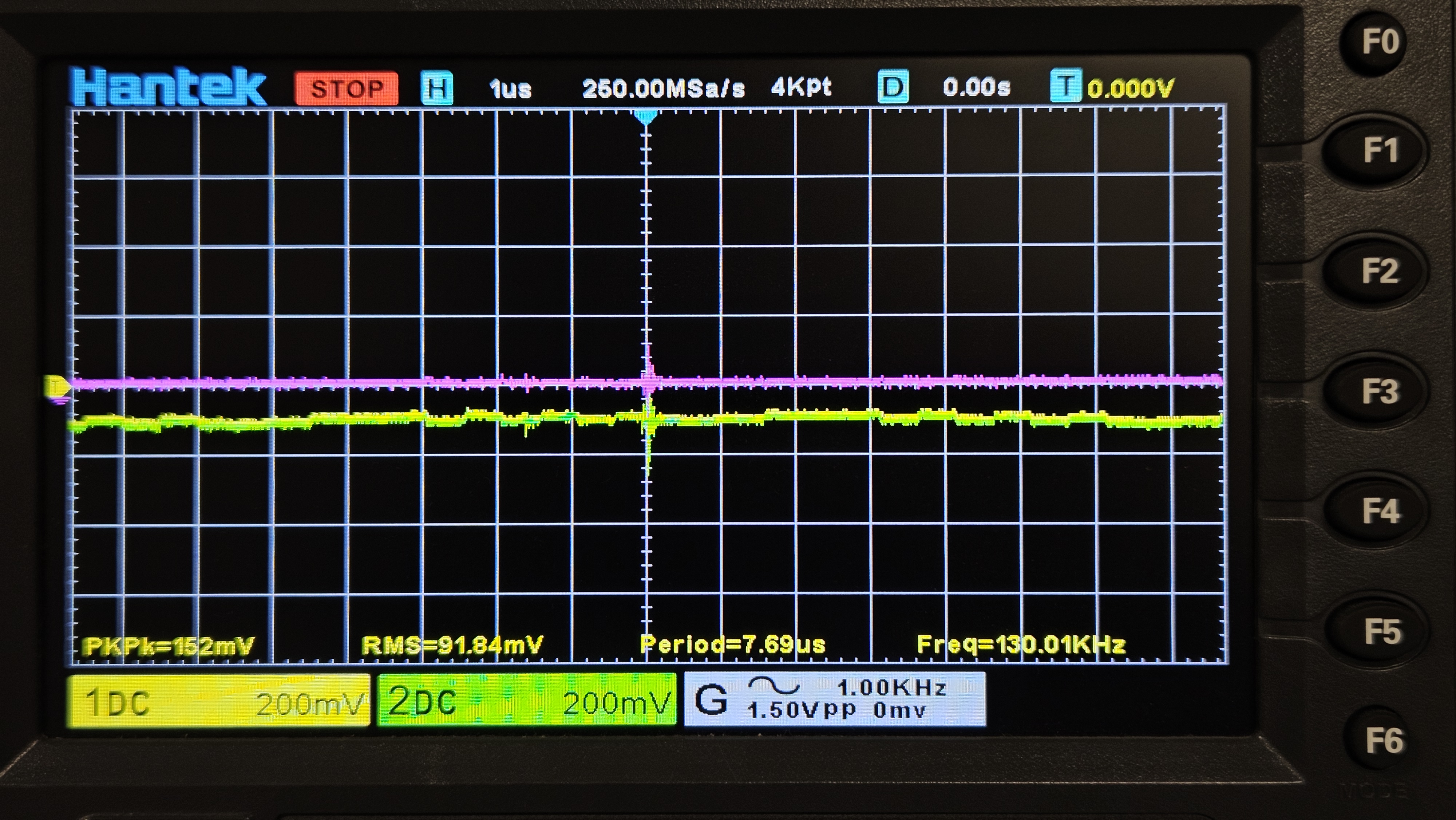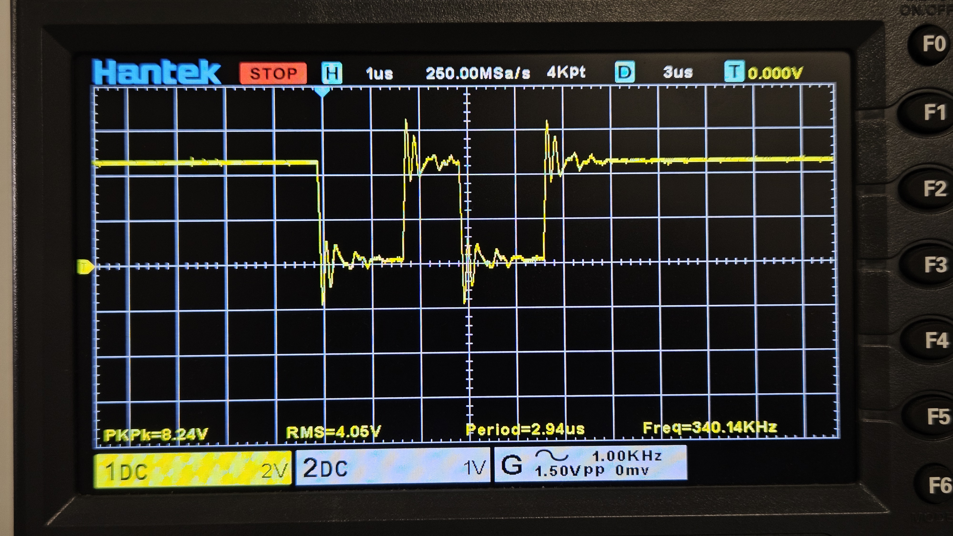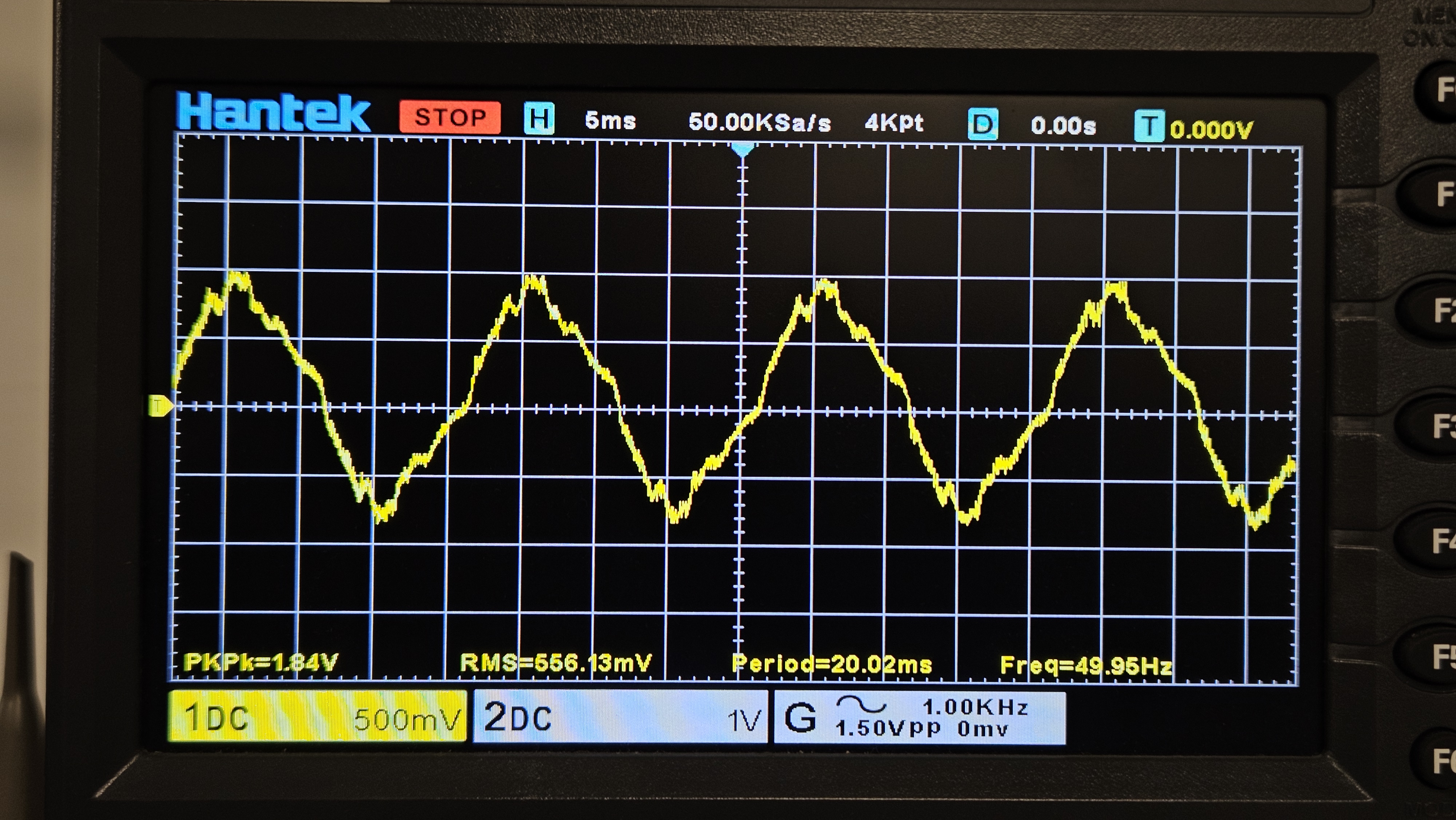 I also found out that my oscilloscope has a dirty GND and that's why im seeing a 50Hz frequency in my signals, so I don't know how reliable the scopes are that I made.