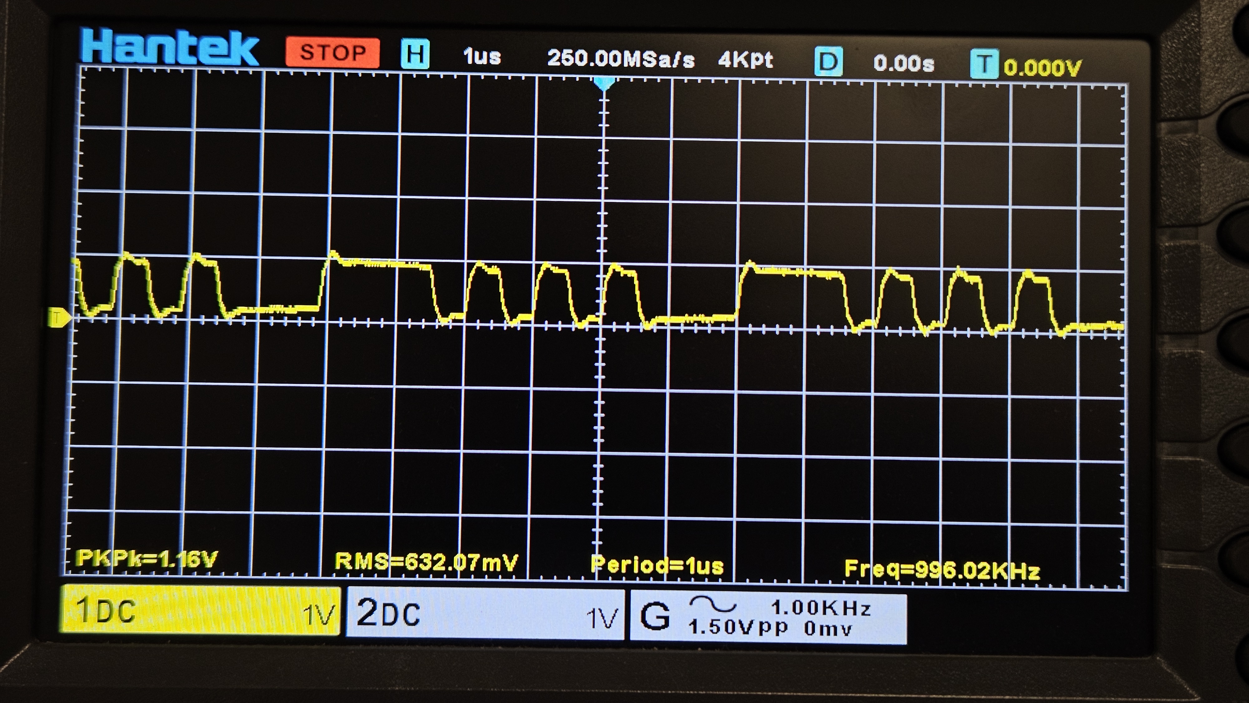 So the output signal is about 1Vp-p and the returning signal is about 50mVp-p so not much of a signal returning.