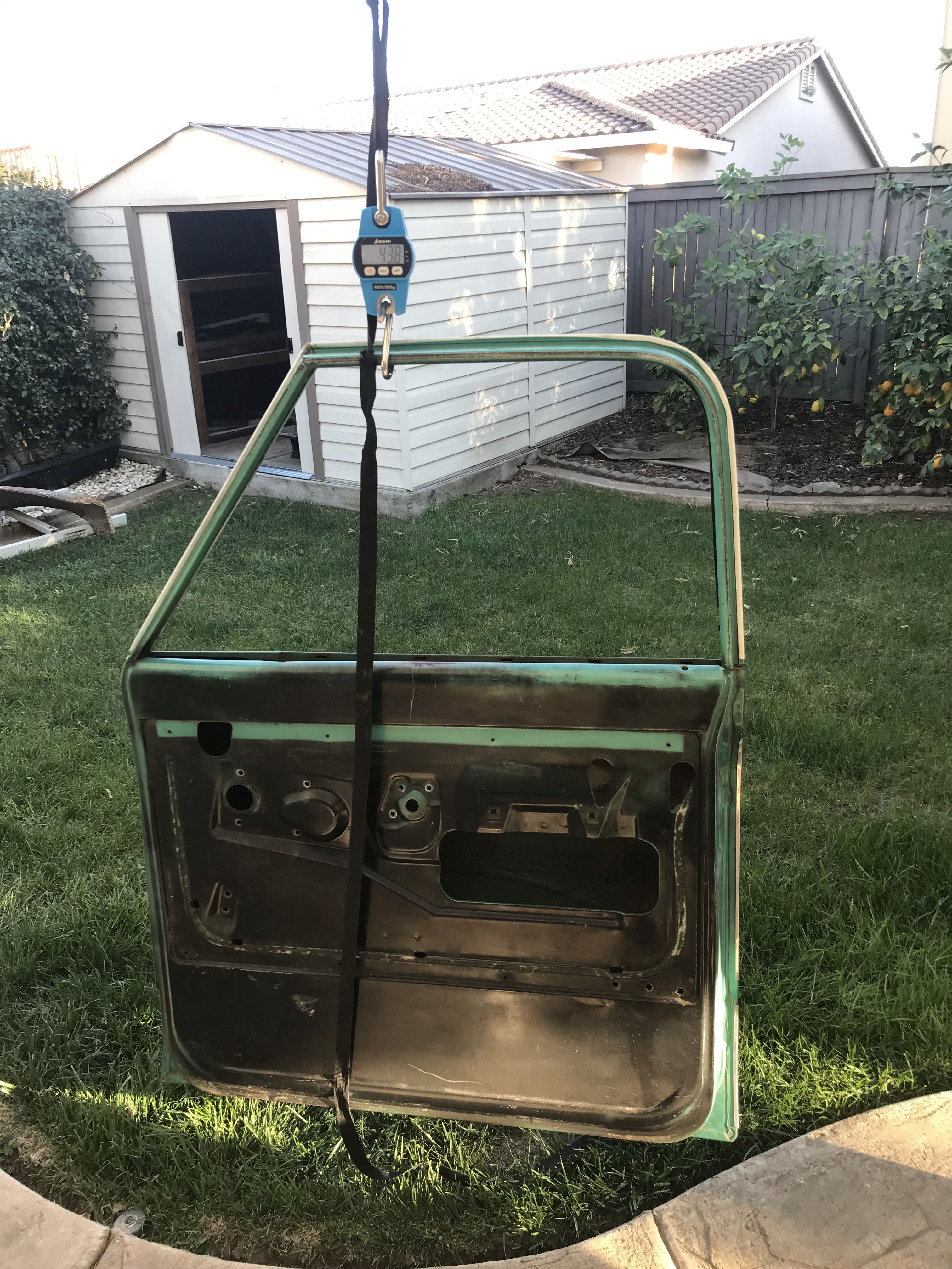 decided to weigh a stripped down door just for funsies, I think maybe those of you outside these Independent States will get a kick out of our 'merican steel trucks (mind you they don't build them like this any more)