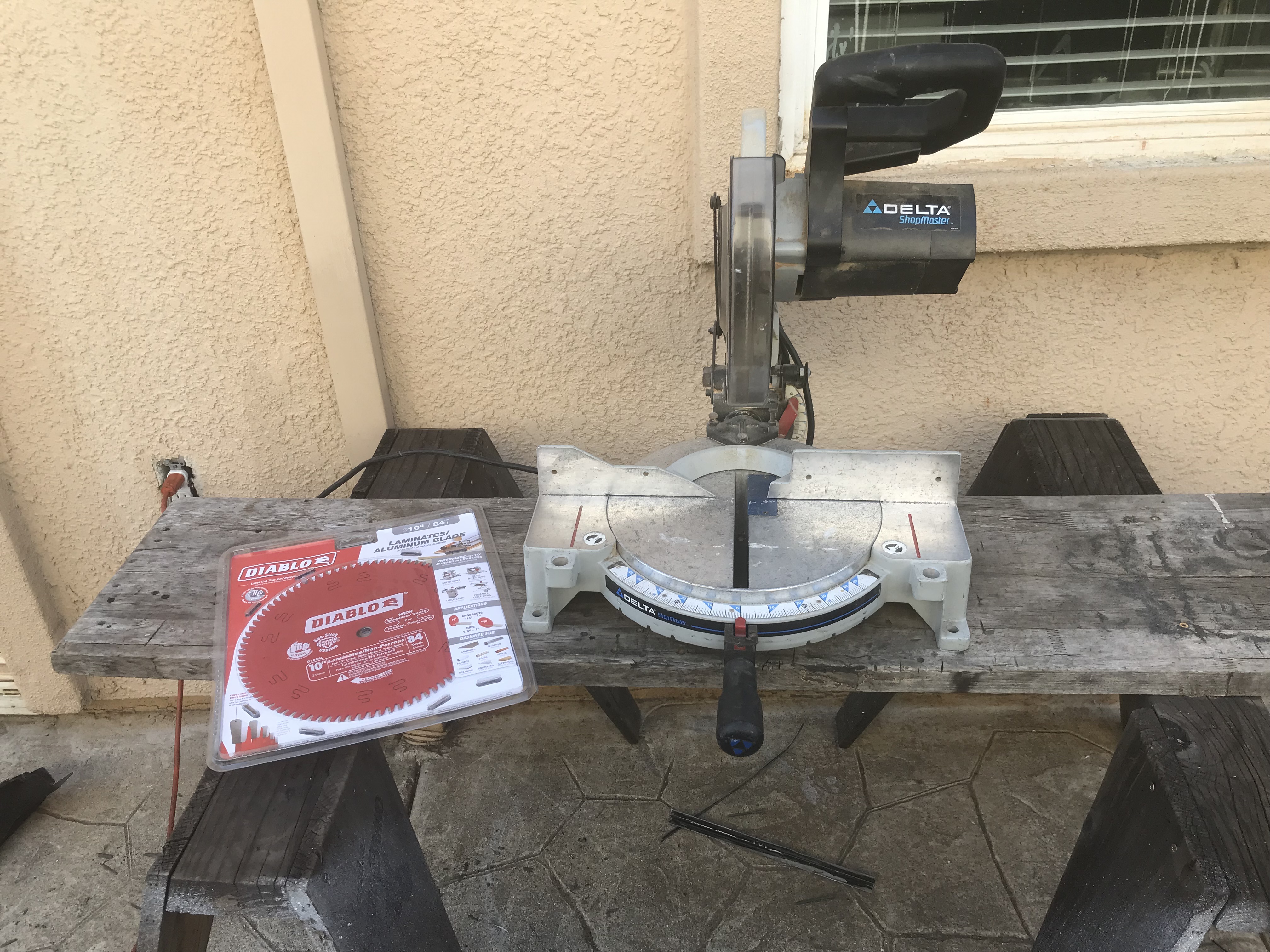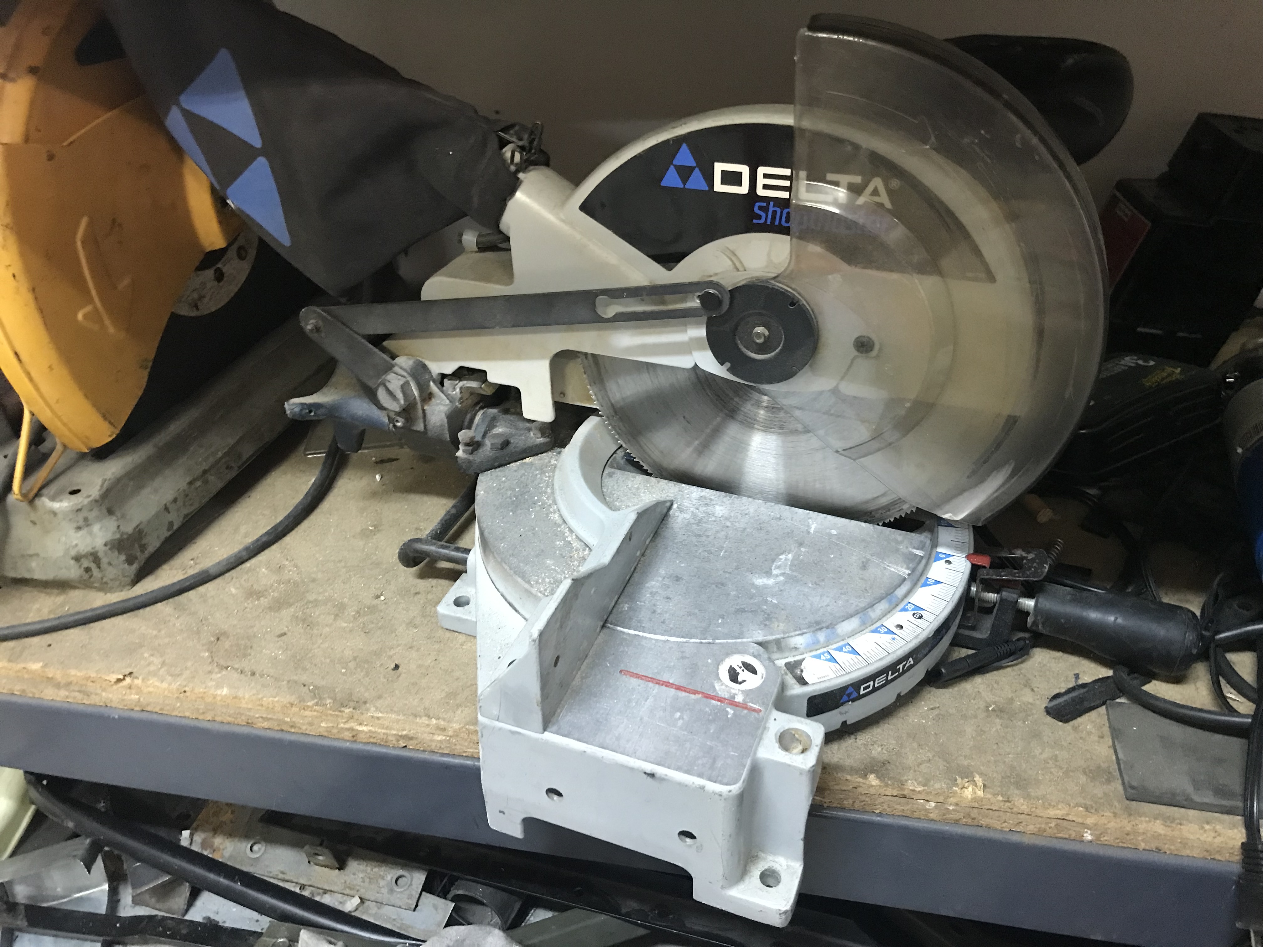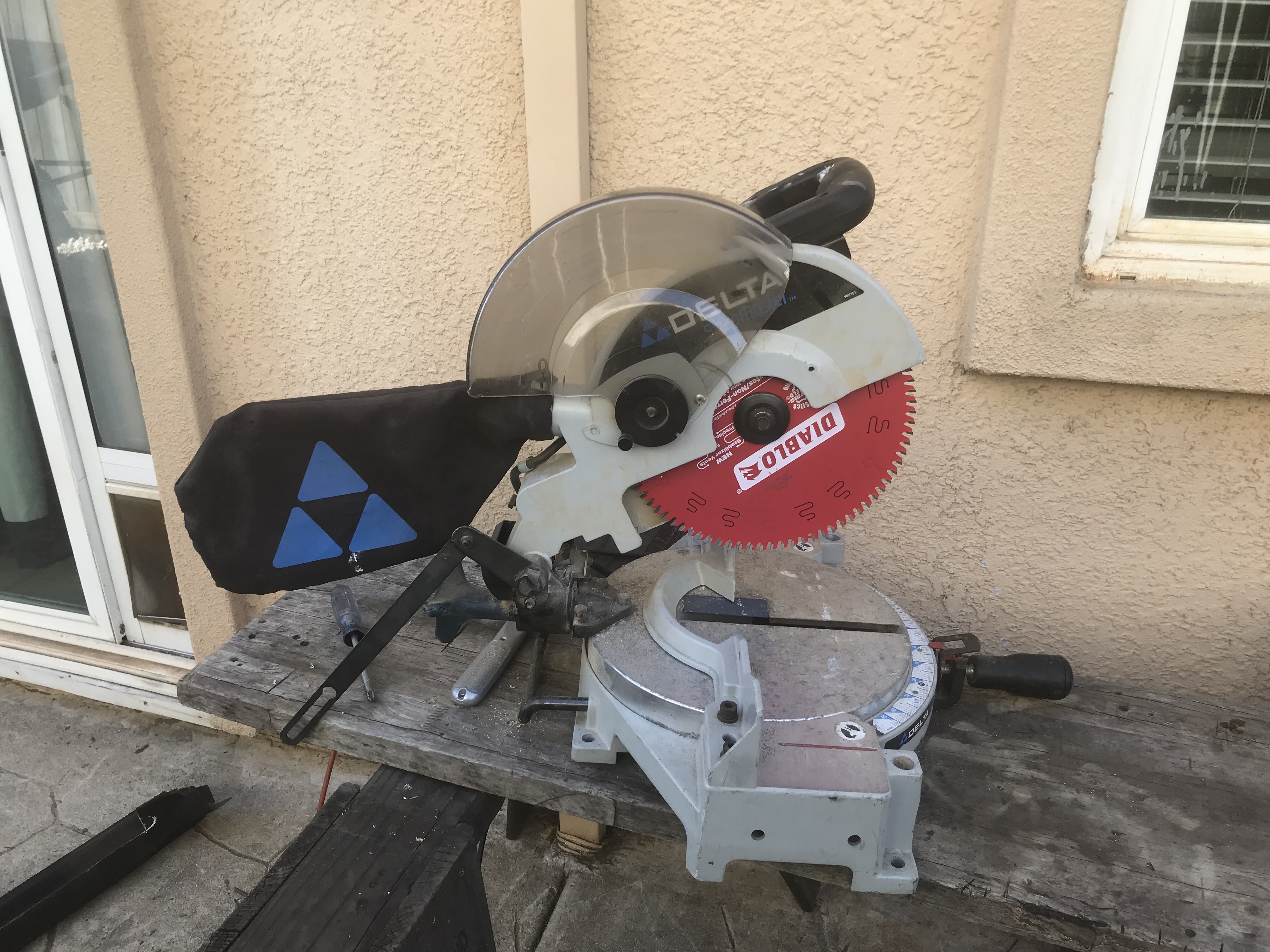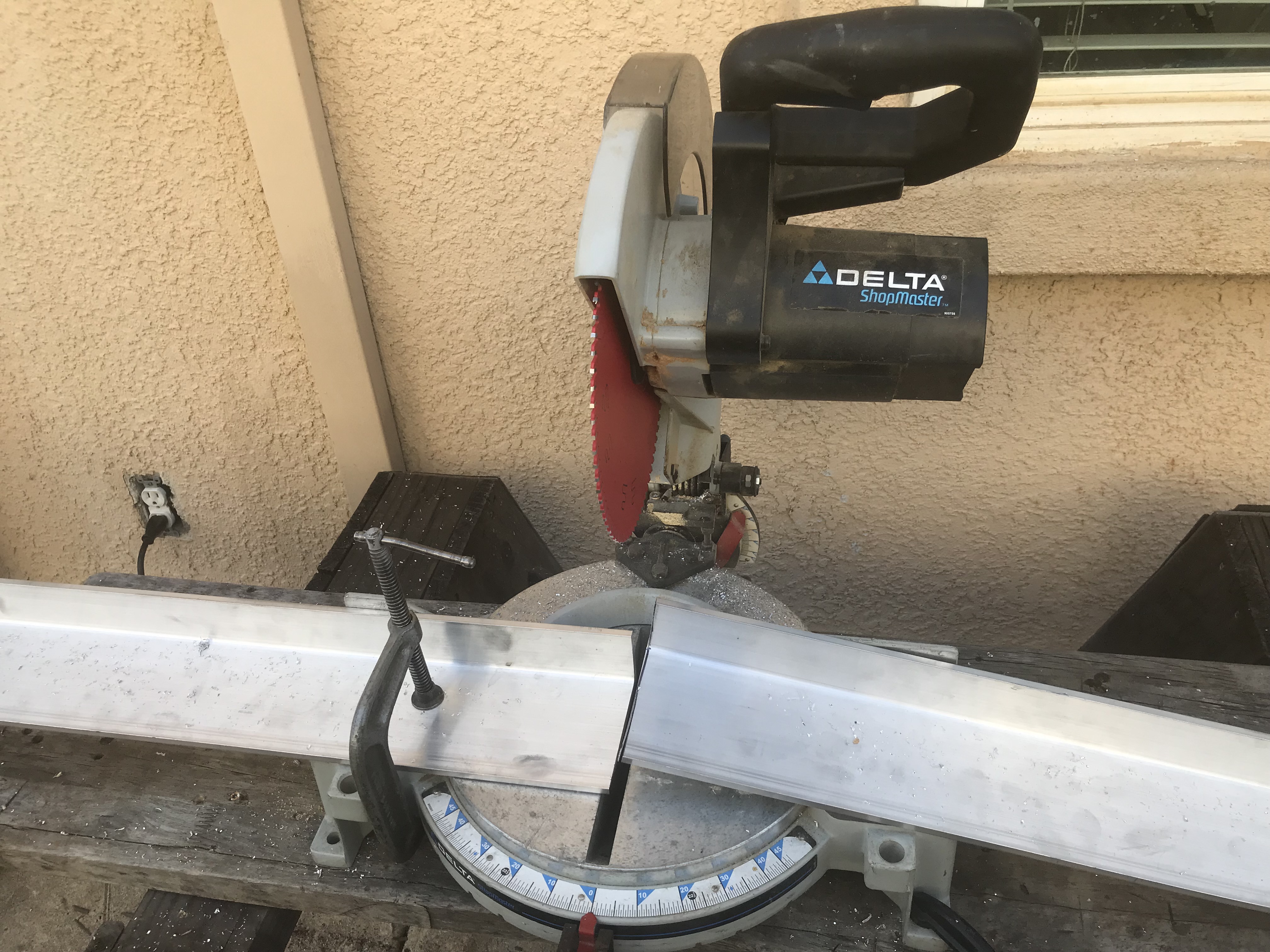 thinking about going in different direction in terms of getting straight cuts on my angle aluminum battery brackets, gonna give my trusty 10" Delta Shopmaster miter saw a go