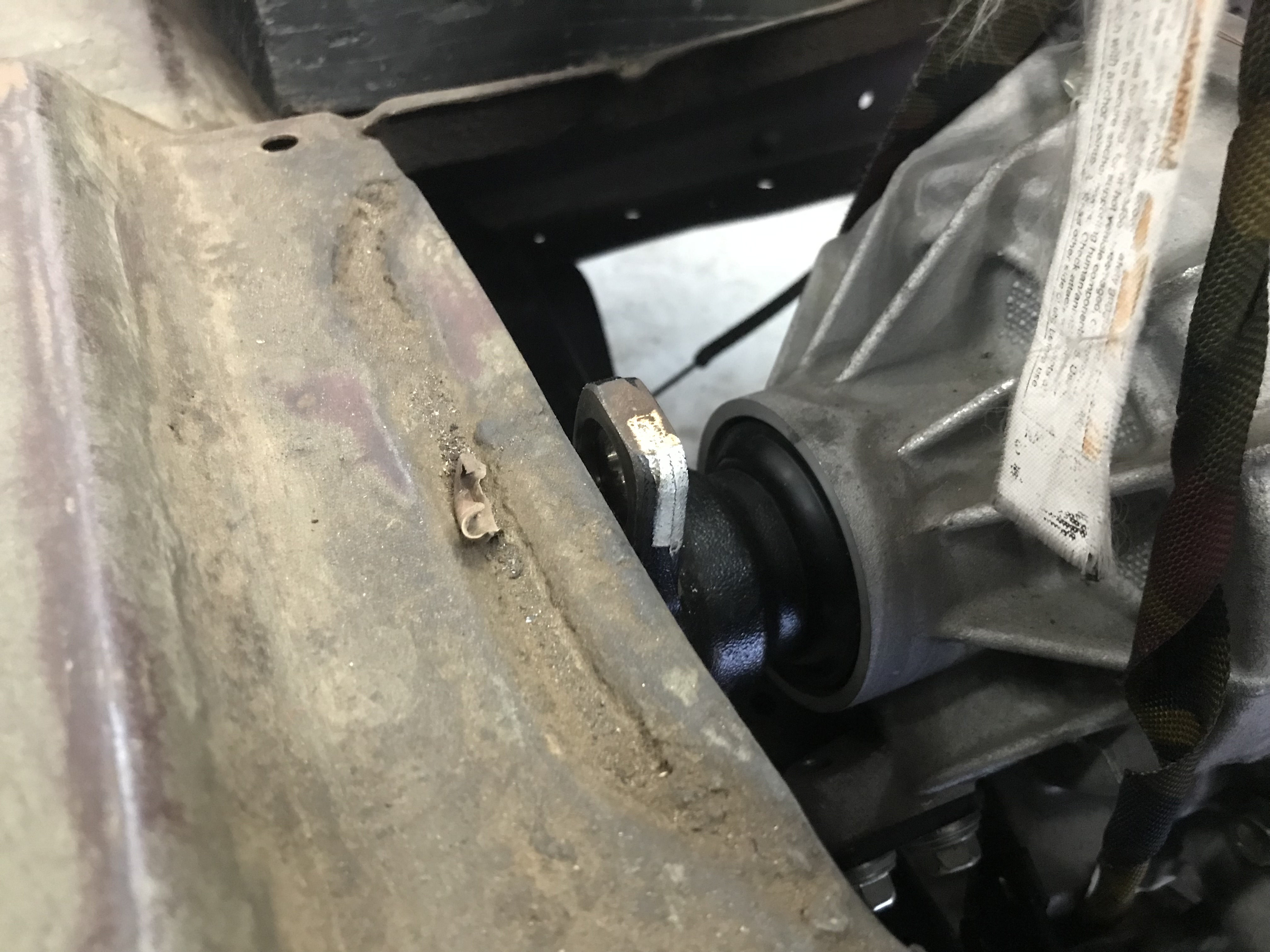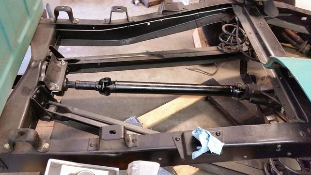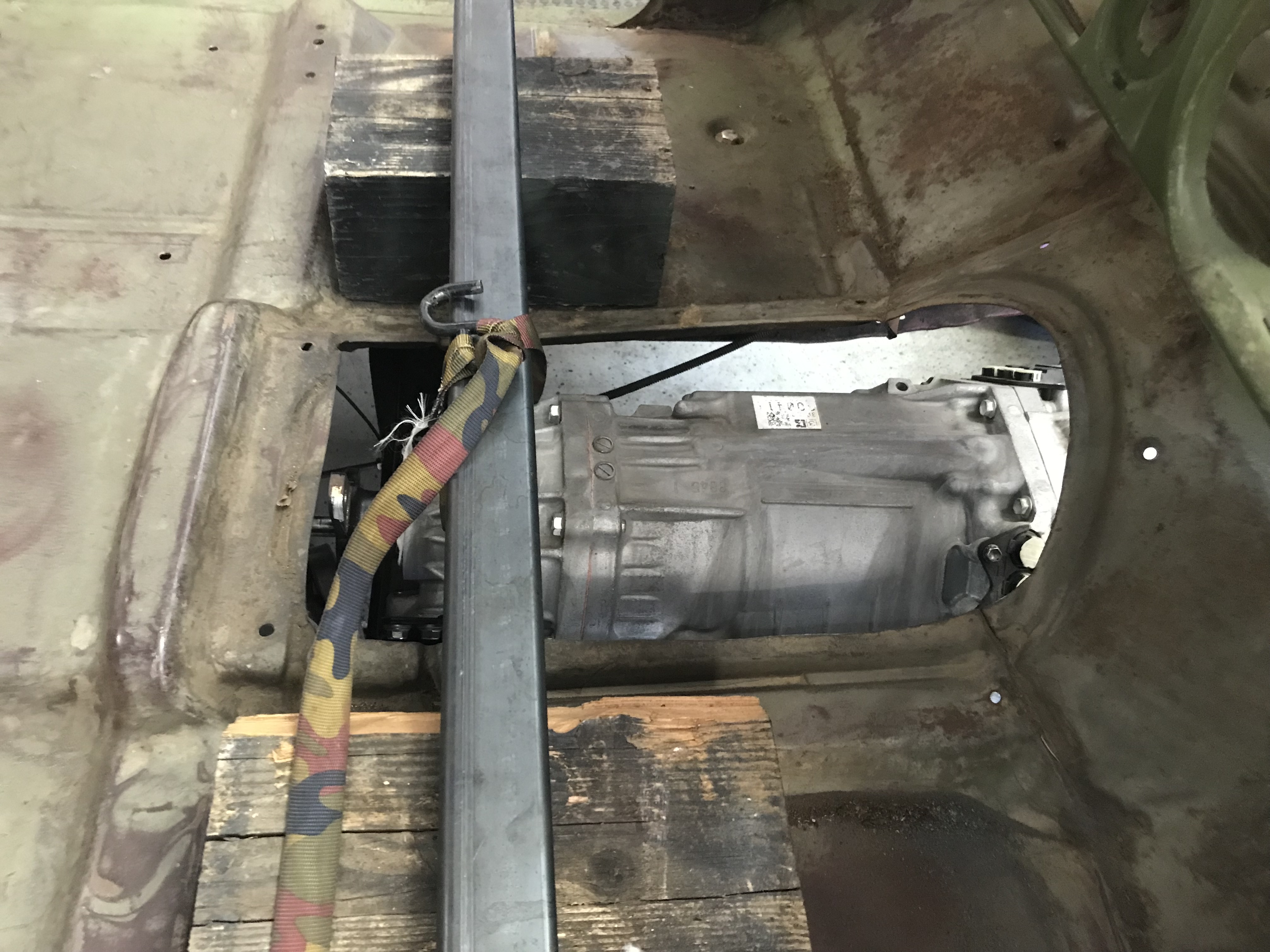 this was my first attempt with the stock transmission crossmember, it just makes the tail end sit too high, so out it came