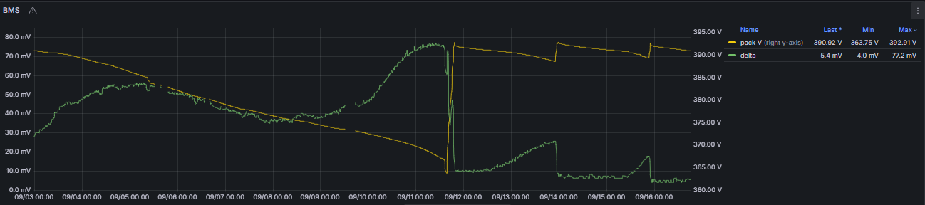 That resulted with car stationary until I sourced replacement inverter and, because I noticed that smallest delta is when cells are above 3900 mV I kept battery in that range.