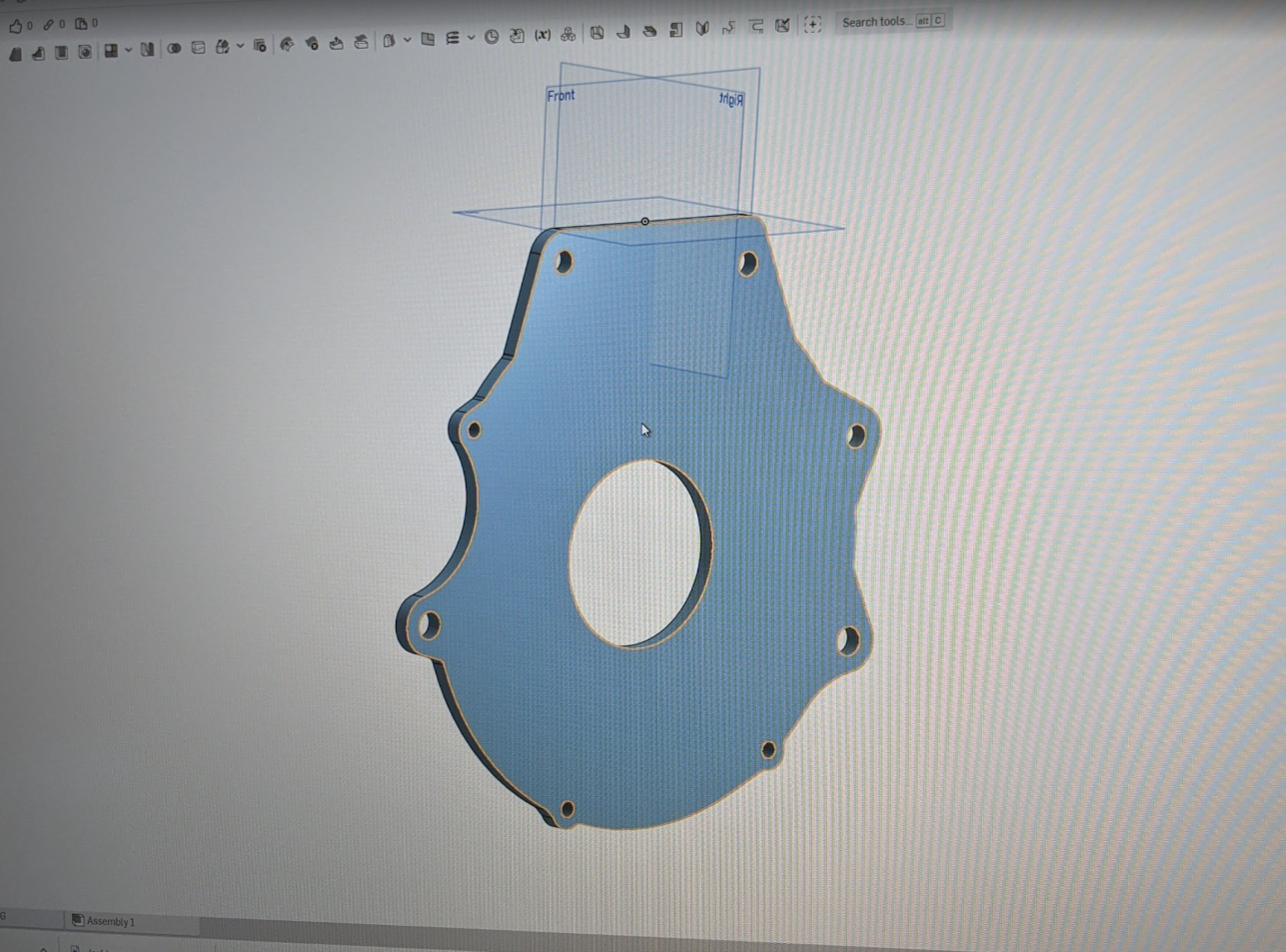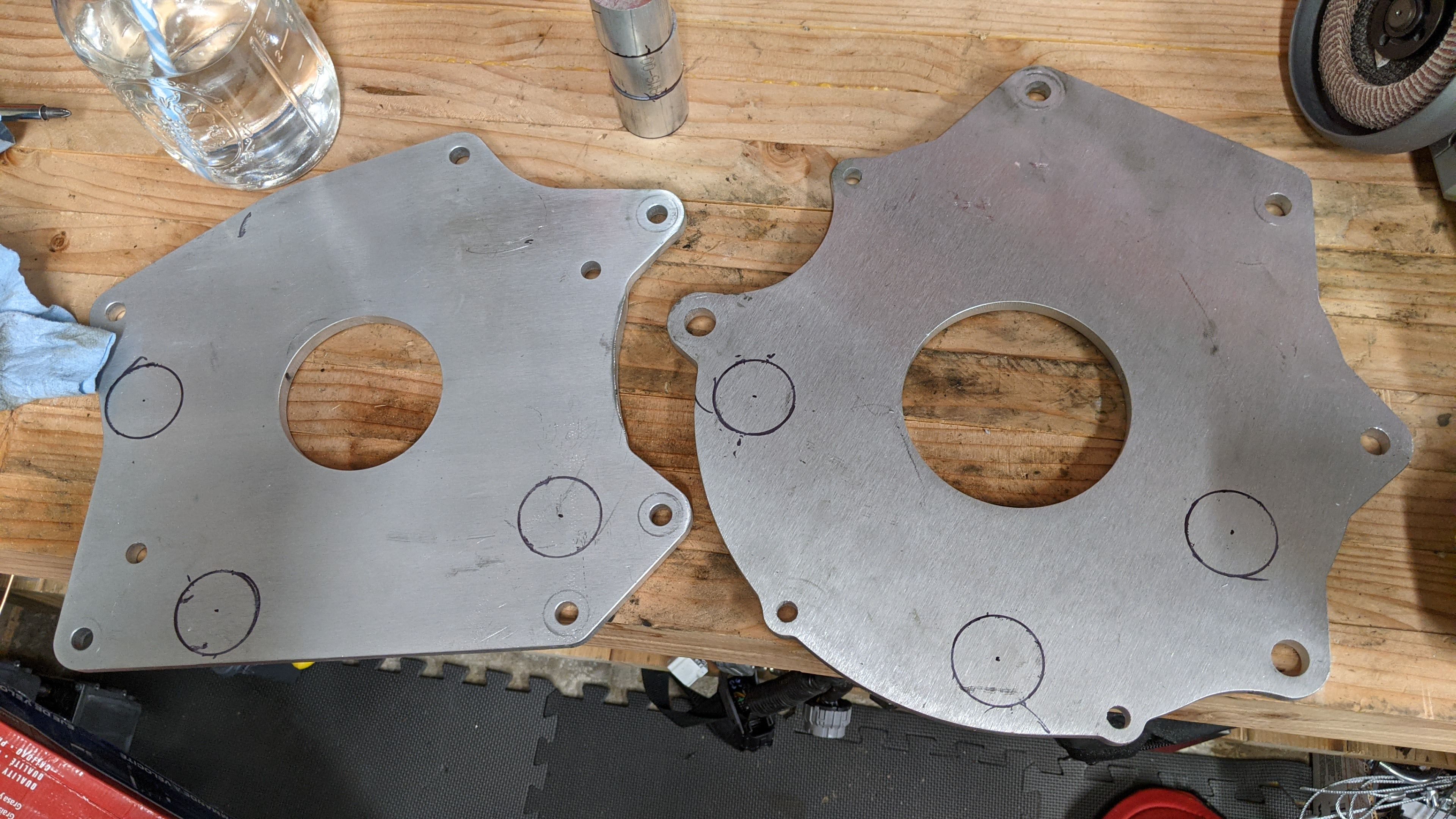 The transmission PDF I used to model one of my adapter plates was probably for a RWD VW and so though it looked correct, it was not. Without being able to find any drawings, or CAD online i resorted to making my own. fortunately i have too many 4cyl VW engines sitting around my garage so i was able to trace a dust shield to get my profile.